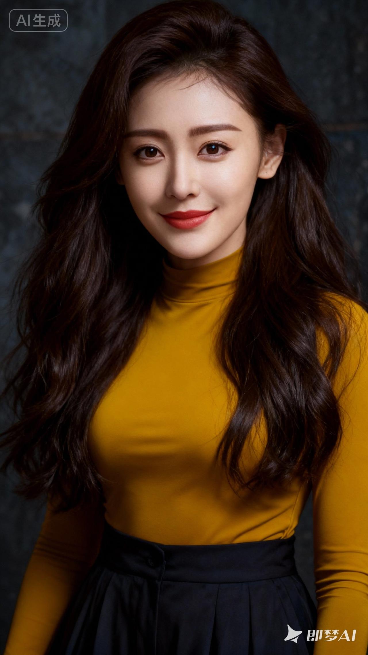 优雅气质,黄色高领衫搭配黑色长裙,尽显时尚魅力!
