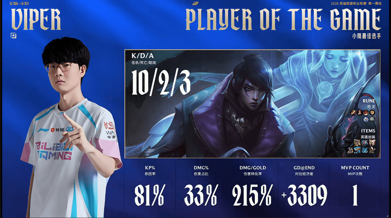 Viper厄斐琉斯打出10/2/3战绩,斩获BLG对阵WBG第二局MVP