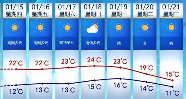 21日的最高气温降至15℃