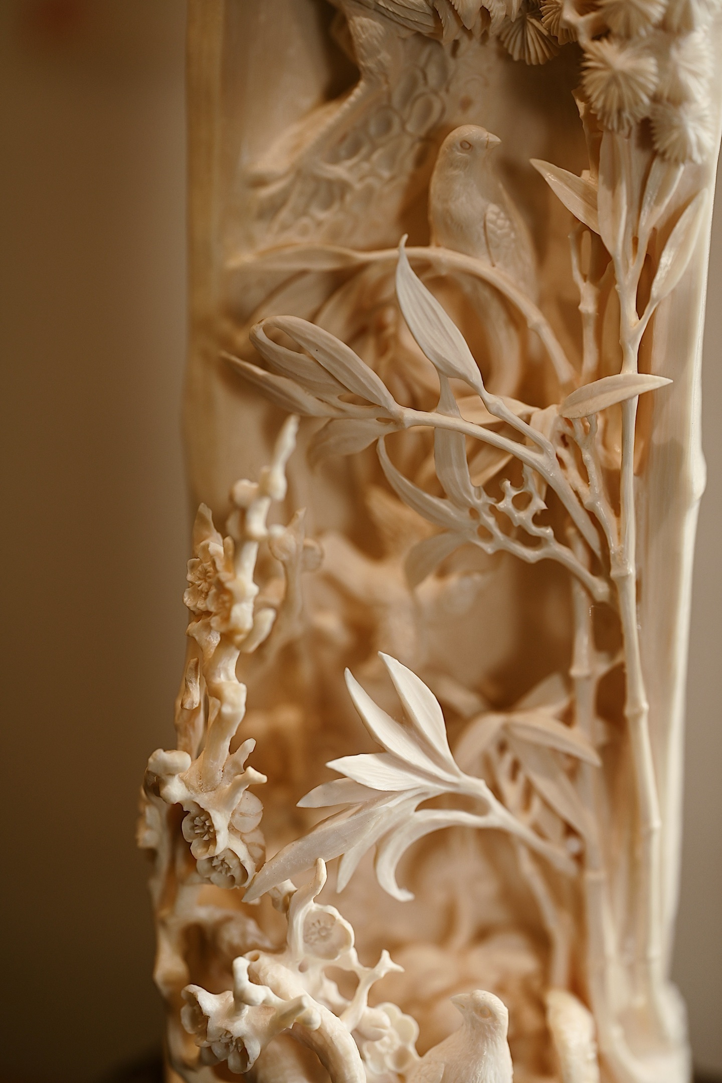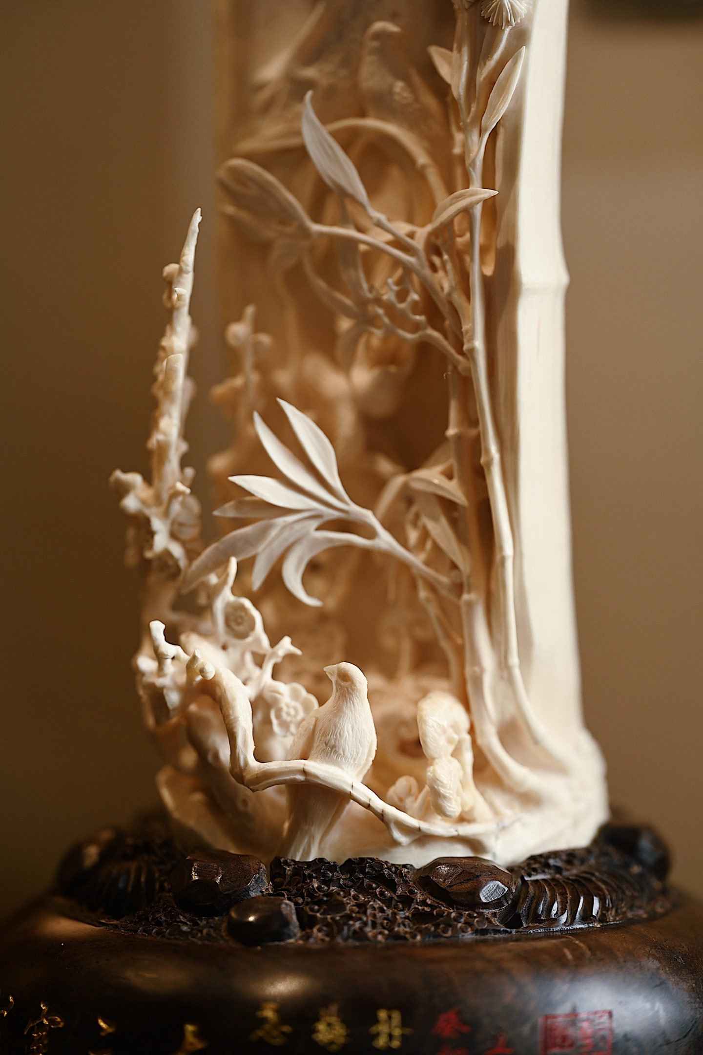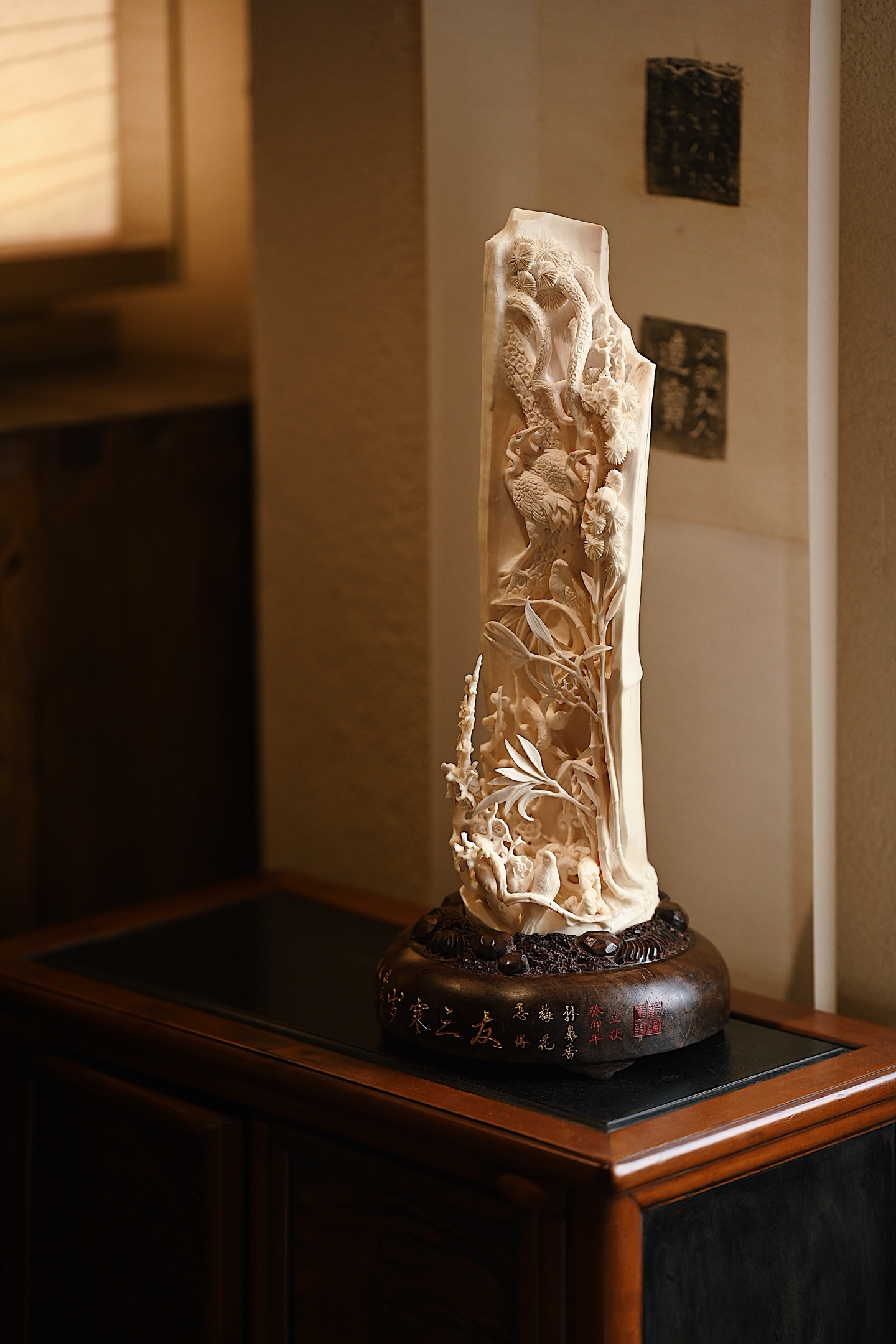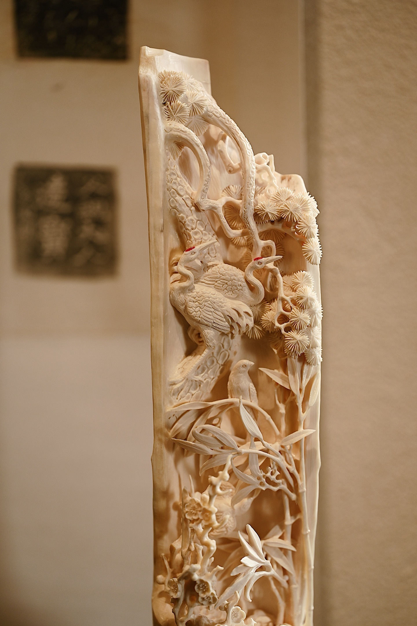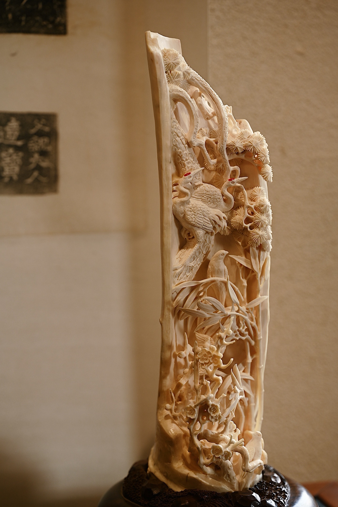 猛犸 | 清鹤•岁寒三友 摆件料质细密温润,巧琢松、竹、梅,错落有致,构思巧妙,恰到好处;瑞鹤翩翩,与梅花相映成辉,松枝盘曲郁郁丛丛,“岁寒三友”傲立霜雪、常青不老,雅俗共赏。14*14*32.5cm 净重866g