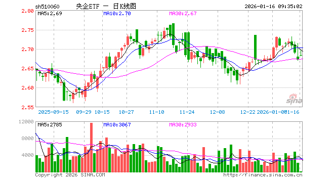 1月16日,央企ETF(510060)开盘涨0.41%,报2.683元。央企ETF(510060)重仓股方面,招商银行开盘涨1.00%,长江电力涨0.22%,中信证券涨0.78%,中芯国际涨2.46%,交通银行涨0.14%,农业银行涨0.00%,京沪高铁涨0.20%,中国船舶涨0.08%,中国银行涨0.00%,中国神华涨0.05%。