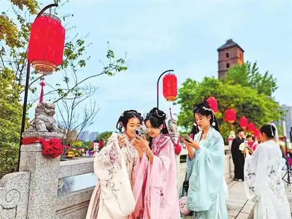 汉服,作为汉民族传统服装的统称,并非单一的款式,而是承载着千年文化底蕴的服饰体系,从各个朝代的演变,汉服以极其独特的美学意蕴,成为中国文化瑰宝。 汉服以简洁,典雅,端庄而又神秘的特点,它透露出高雅,高贵的气息,这种魅力让人无法阻挡。 国家强大了,人民生活富裕了。 当下,在网上社交平台,分享汉服的讨论不可胜数。 在线下,部分学校及社区也组织了不少与汉服相关的亲子活动,让孩子们在活动中,更多的了解中国传统文化的魅力。 如今在全国著名的旅游景区景点,放眼望去,穿着汉服,不仅是作为中国传统文化符号和象征,更是作为一种社交符号,展示自我,结交他人。别具特色的汉服与美景,行成一道靓丽的风景线。 汉服热,与此同时,汉服通过海外社团,国际化时装周,也令外国人为时髦穿着走向世界。 汉服,成为中国文化出海的一张视觉名片。