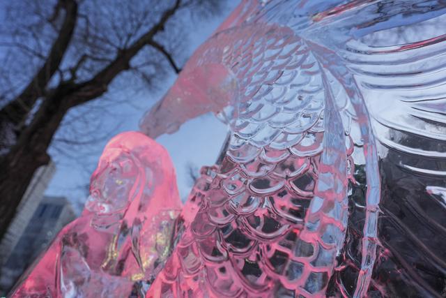 这是在哈尔滨市兆麟公园举办的第52届哈尔滨冰灯艺术游园会上展出的冰雕作品(1月14日摄)。