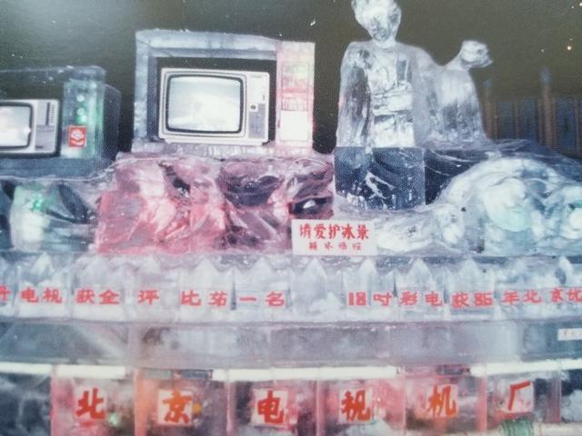 1988年,第十四届哈尔滨冰灯游园会的冰广告。