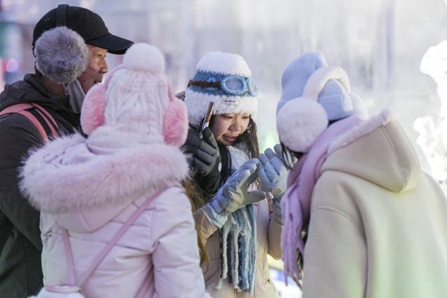 2025年12月17日,游客在哈尔滨冰雪大世界参观游览。
