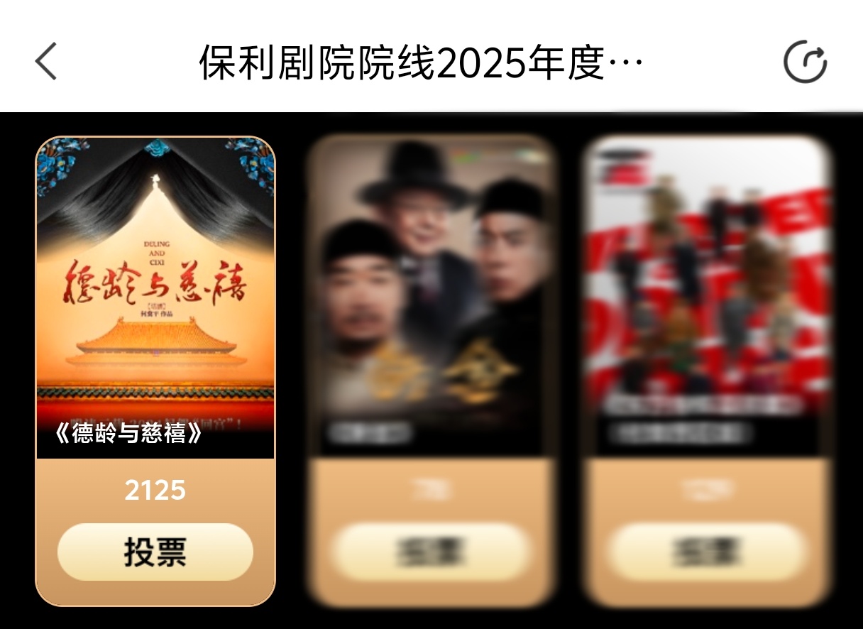 投🎫新增大麦‼️『2025大麦年度聚光好戏』网页链接 (一人一票)保利的也别忘了‼️ 『2025保利年度观众最爱剧目』网页链接,每人每天可投3票 截止到1月20日肖宇梁话剧 xyl肖宇梁德龄与慈禧肖宇梁饰演光绪
