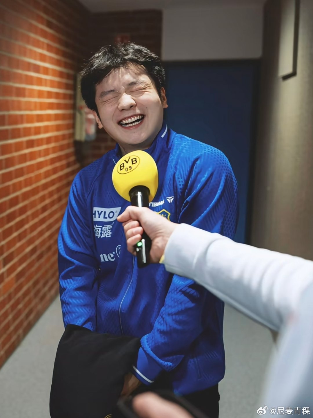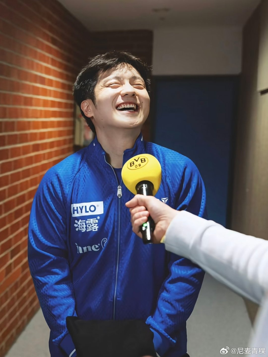 遇到难回答的问题就学樊振东 现在,输球行,赢球也行,遇到难回答的问题就摇头晃脑战术性思考开心大笑卖个萌,功夫熊猫FanNi现在可快乐了。