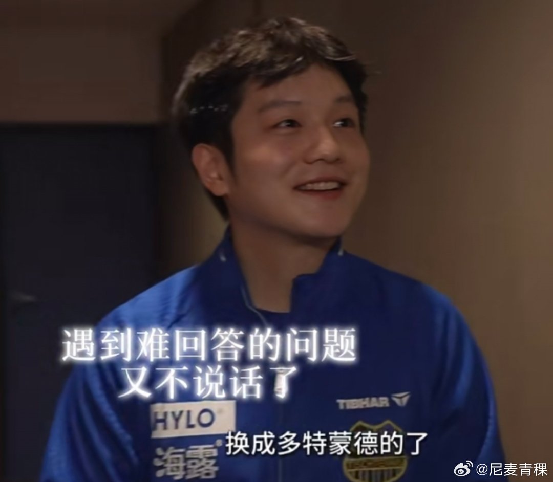 遇到难回答的问题就学樊振东 现在,输球行,赢球也行,遇到难回答的问题就摇头晃脑战