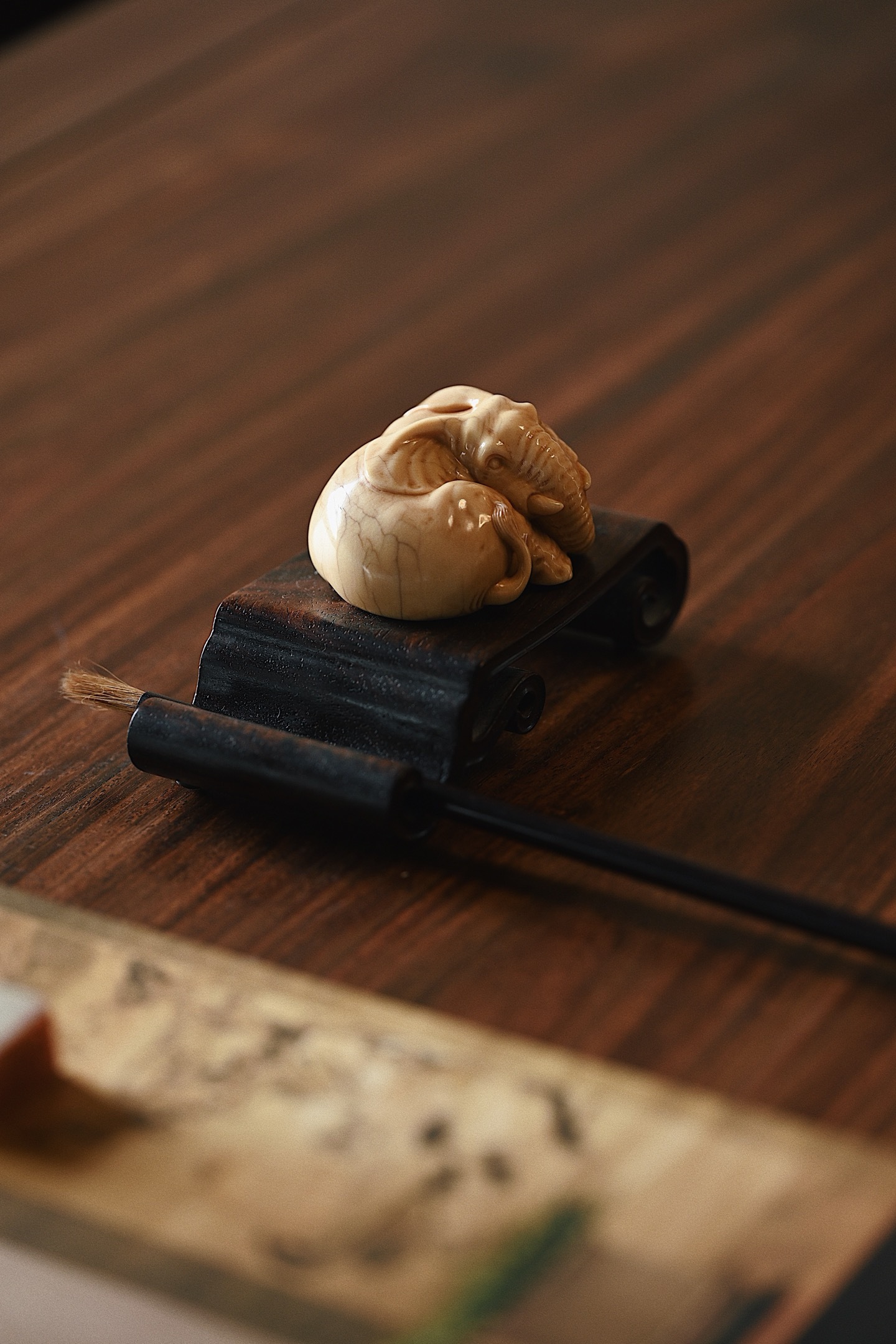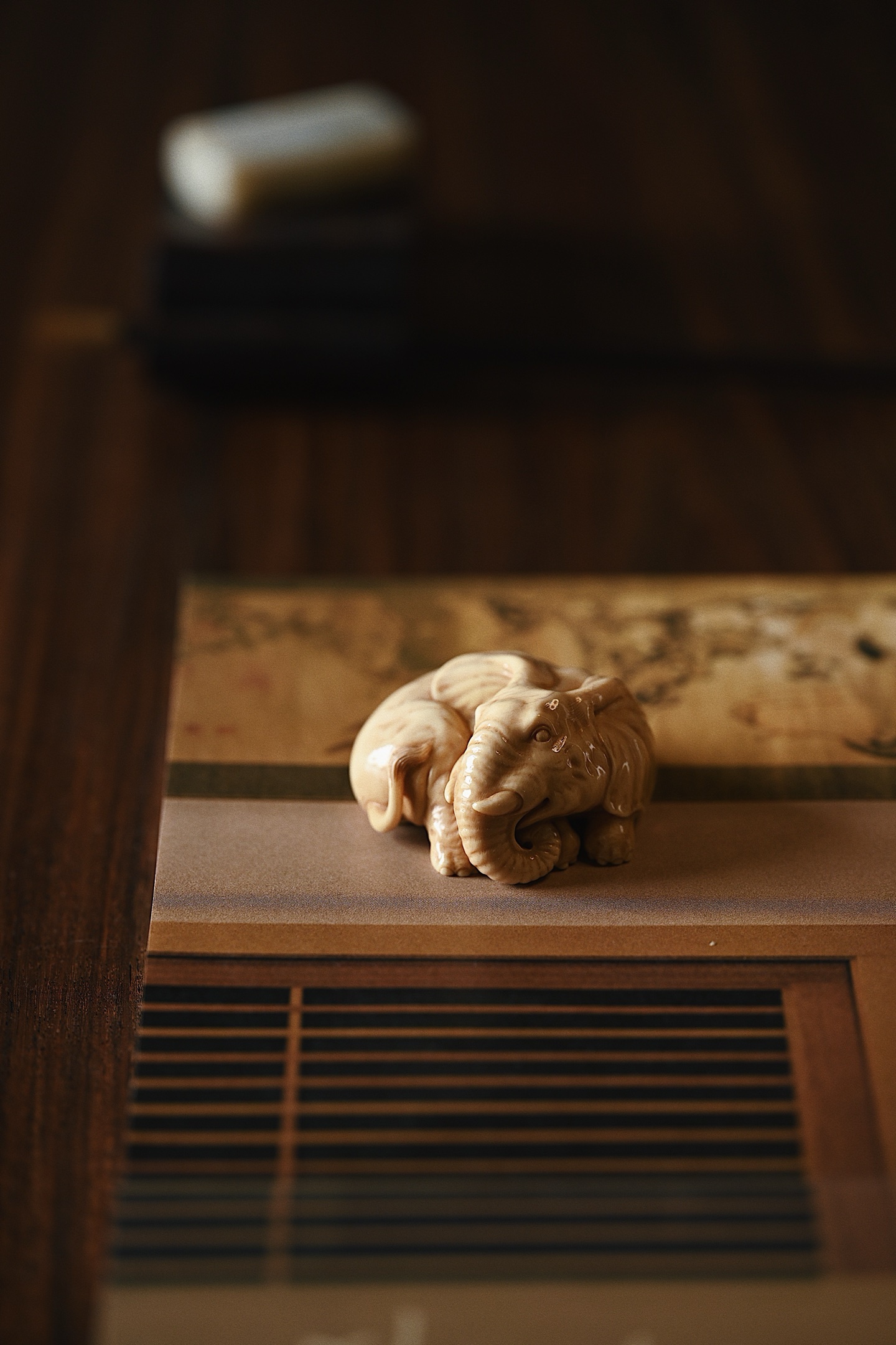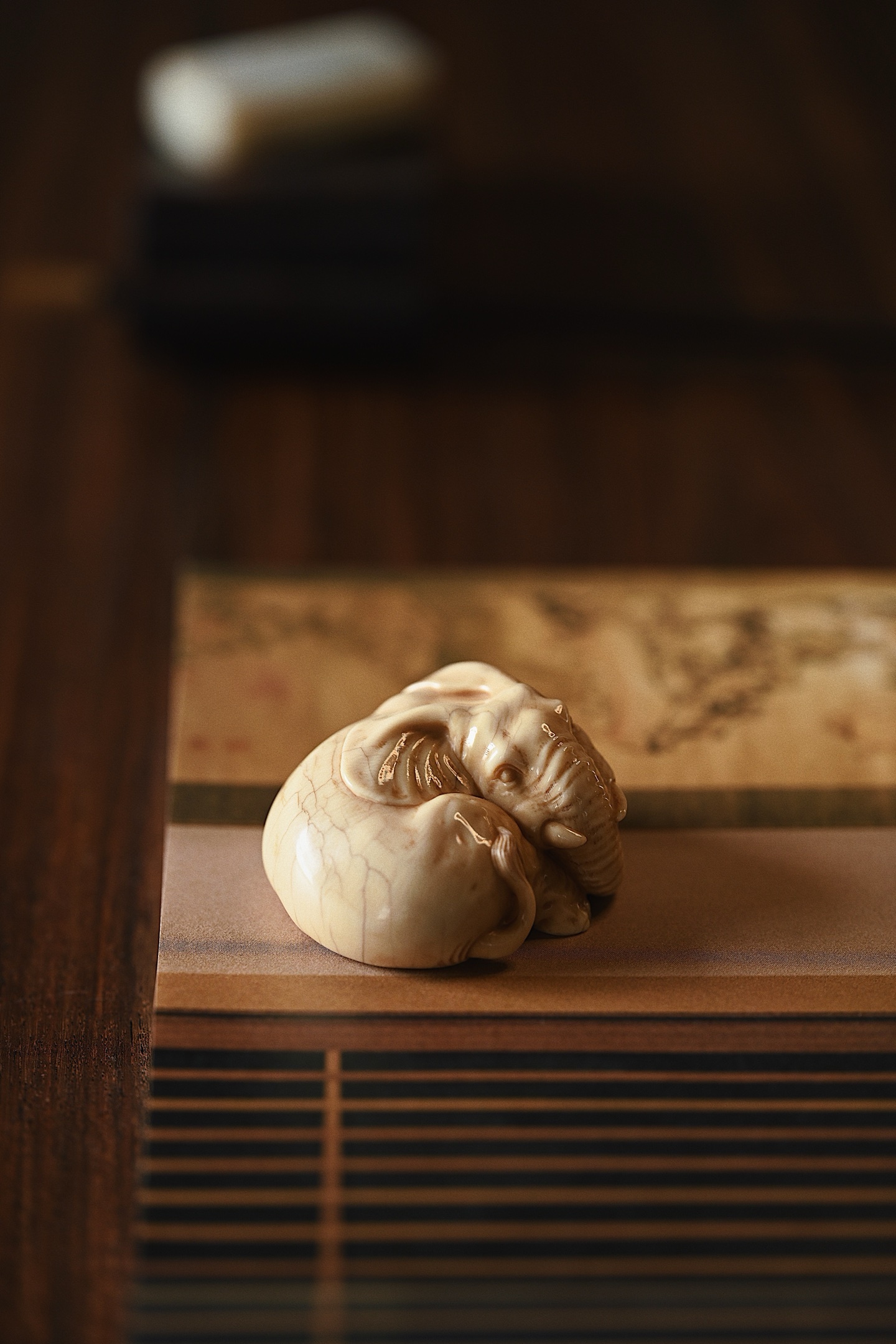 猛犸仿古 | 一团吉象 茶宠摆件仿古细腻有韵,裂纹充满质感,大象团卧,卷鼻圆眼,神情温驯,做工细致精巧,雕工浅深有致,萌意十足,寓意吉相有福。5.5*4.8*3cm 68g