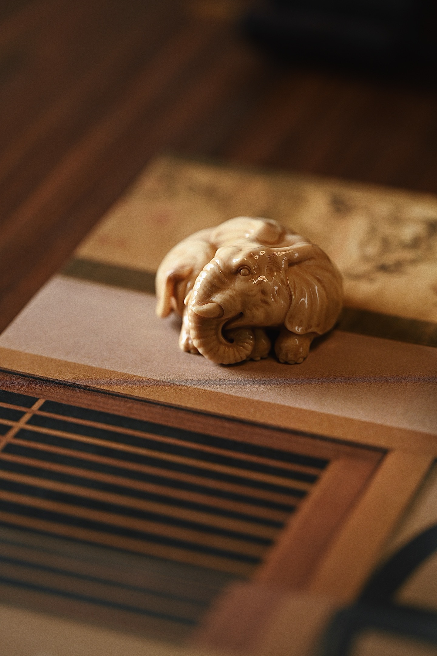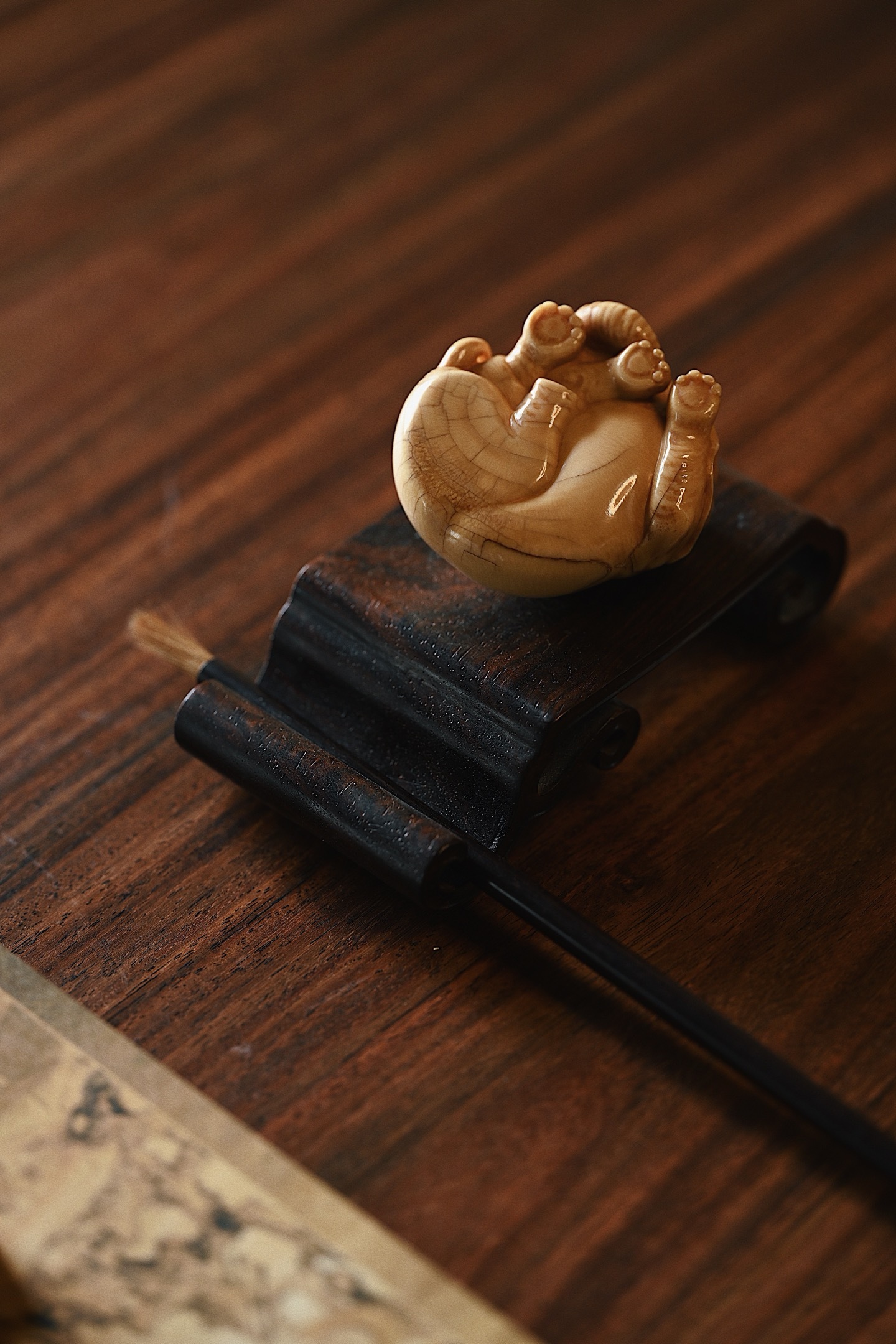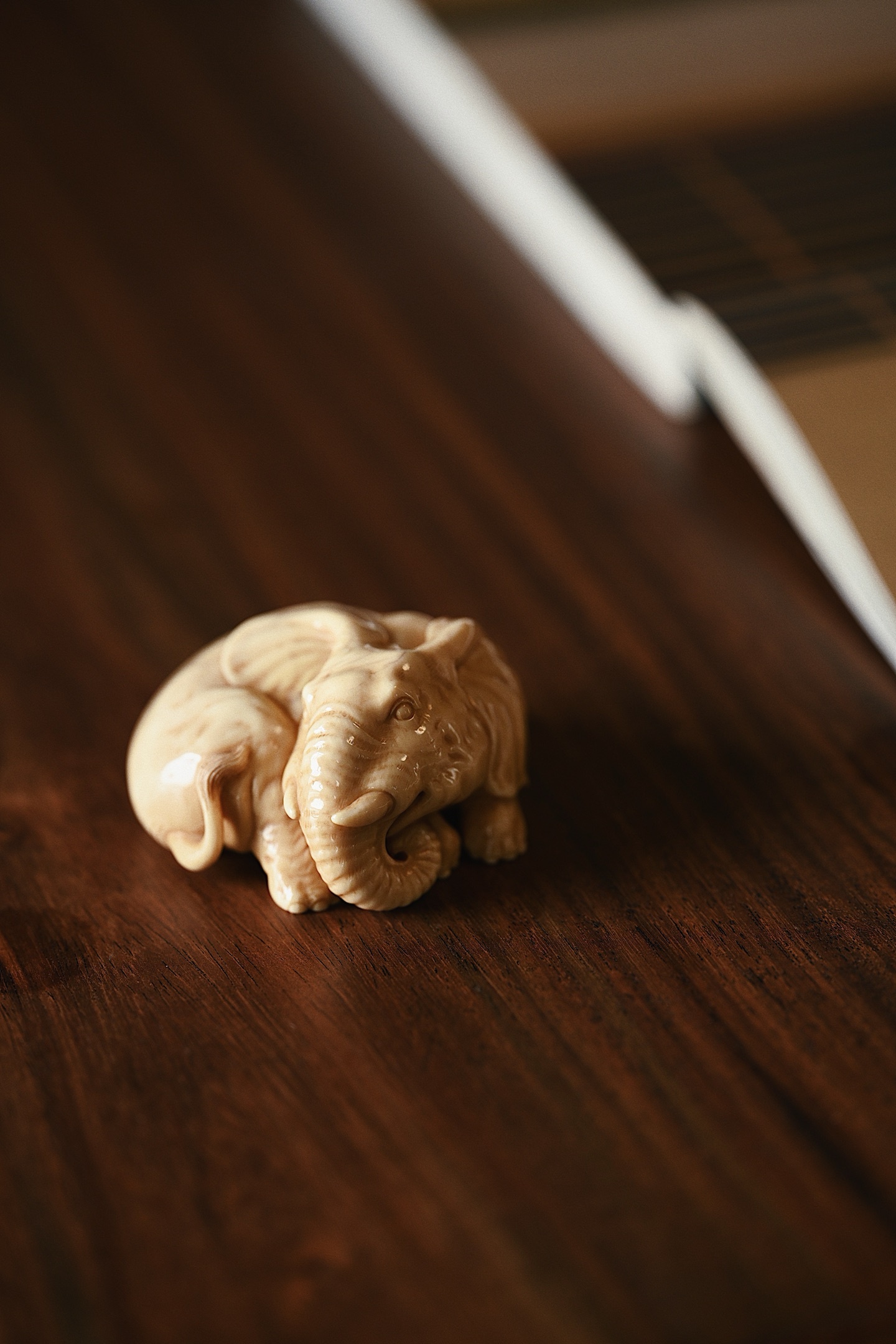 猛犸仿古 | 一团吉象 茶宠摆件仿古细腻有韵,裂纹充满质感,大象团卧,卷鼻圆眼,神情温驯,做工细致精巧,雕工浅深有致,萌意十足,寓意吉相有福。5.5*4.8*3cm 68g