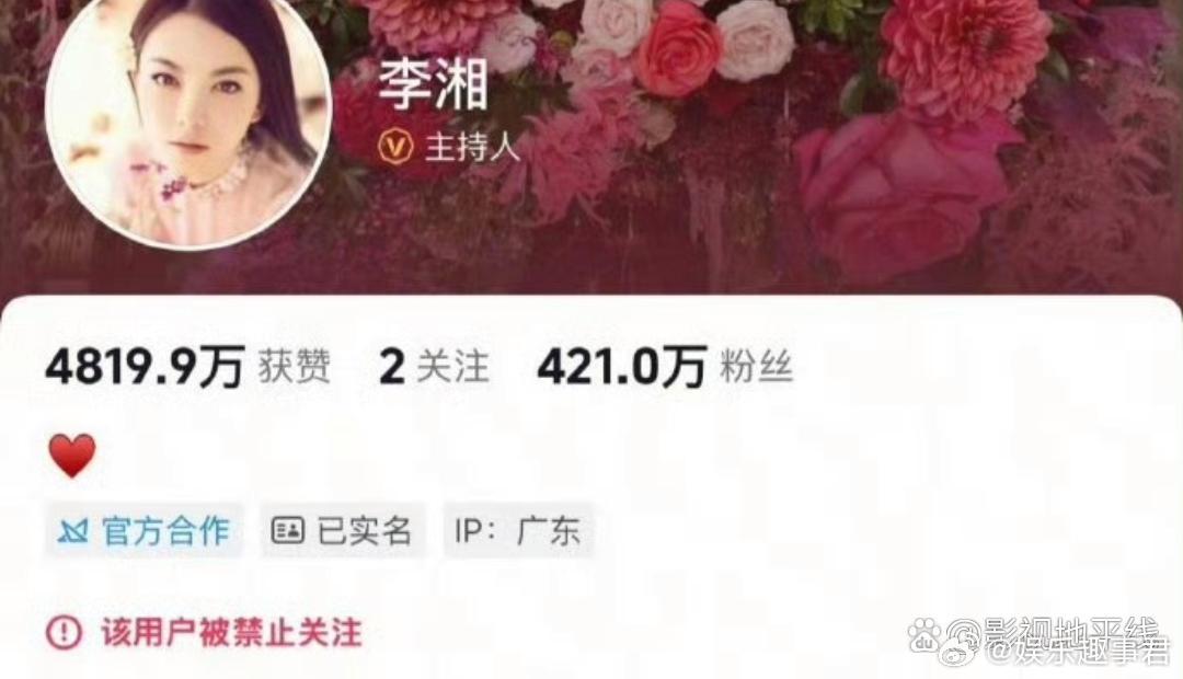 李湘全平台账号被禁止关注1月16日上午,有网友发现,李湘全平台账号已被禁止关注。这是发生什么事了?