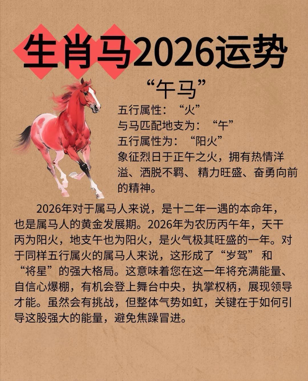 2026年是丙午火马年,属马人将迎来十二年一轮的本命年。民俗中,本命年是自我调整