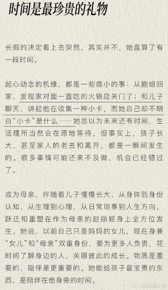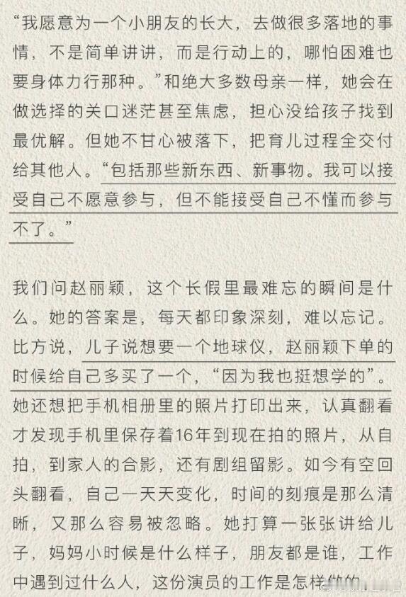 赵丽颖新采访里提到了儿子想想,感觉她也和所有母亲一样,在为孩子不停地接受新鲜事物,了解更多世界,读起来还挺温暖的。