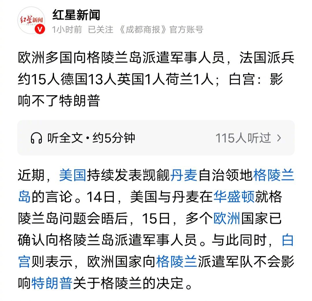 丹麦这一次,又破防了,法国刚派兵到格陵兰岛,随后美国白宫卡罗琳的话又让他们坐不住