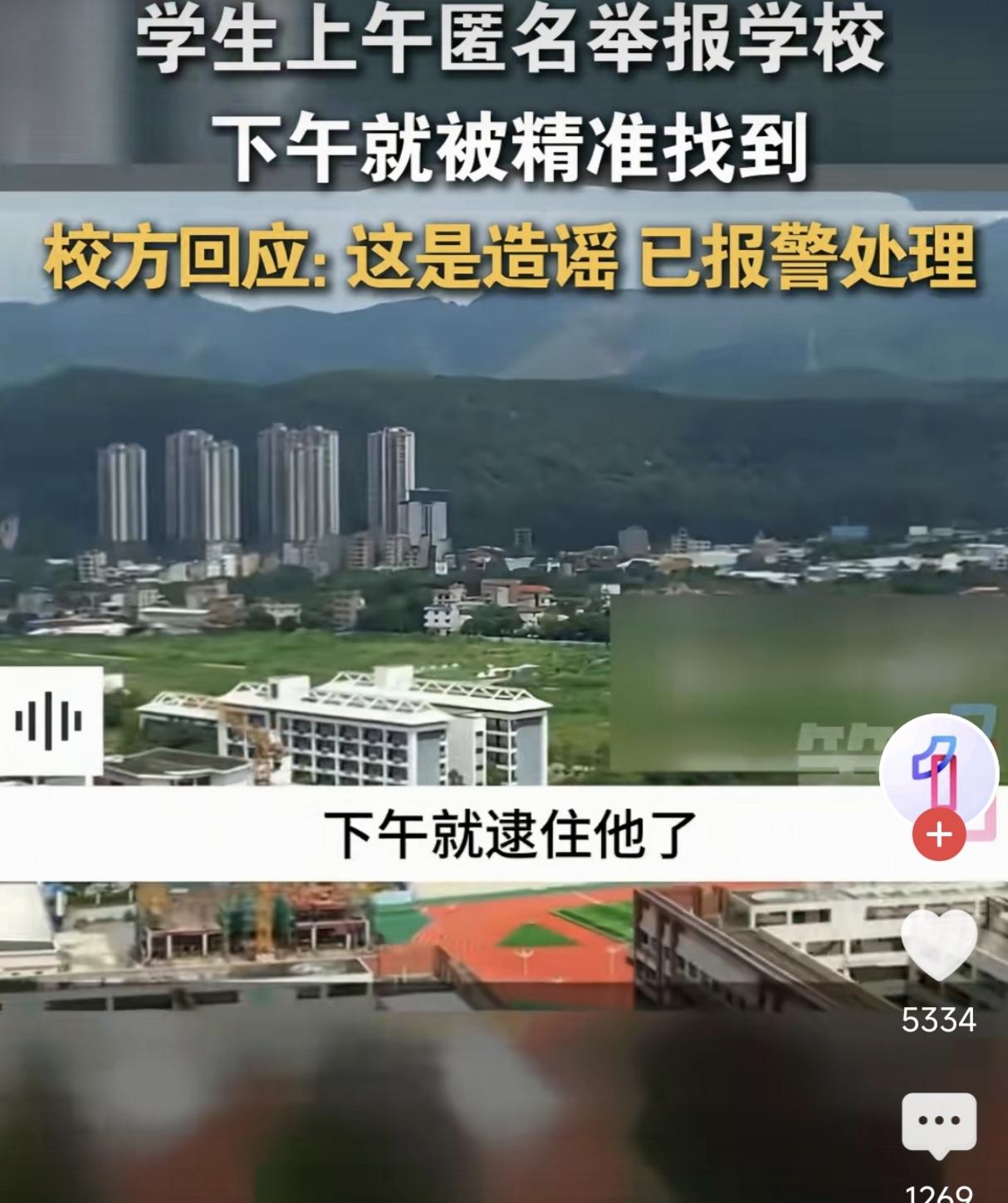 学生上午举报学校下午就被精准找到!校方回应:这是造谣!但愿这是造谣,不然太可怕了!