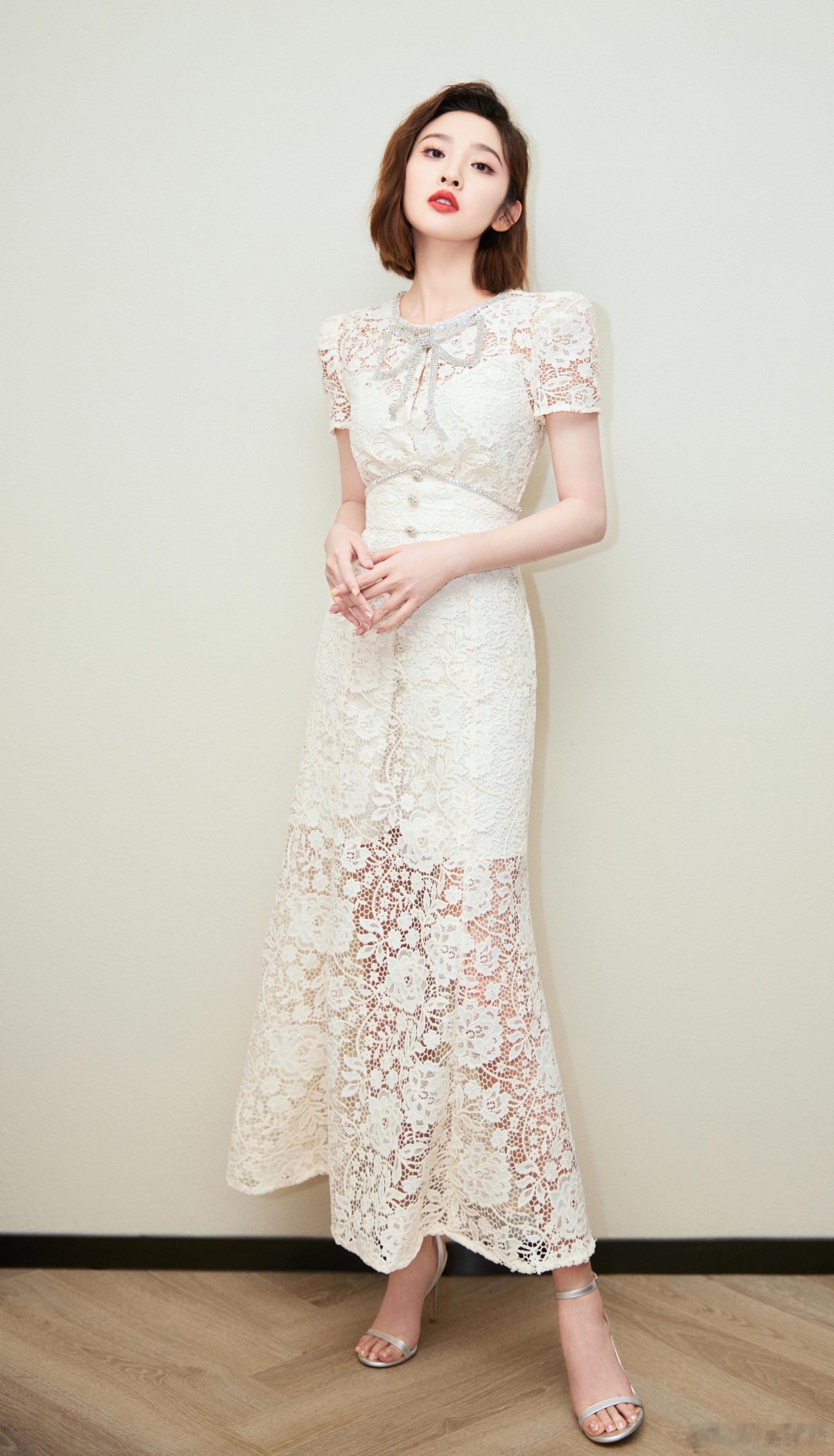 《蝶恋花》素缕蕾丝裁玉袂,露肩轻扬,叠影凝香雪。一笑嫣然风暗度,不借丹青,自