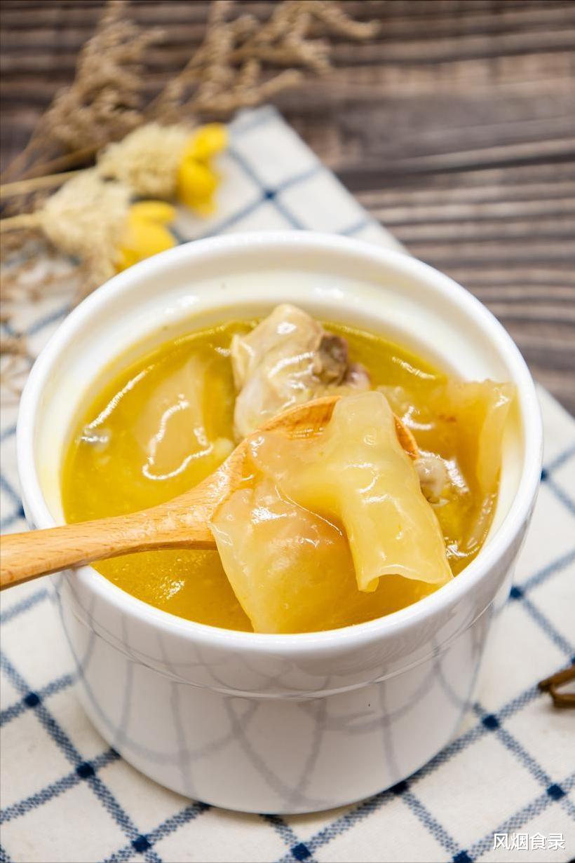 出来的汤色金黄发亮,看着油,喝着却不腻,嘴黏黏的像被胶水糊住,这才是真胶原。