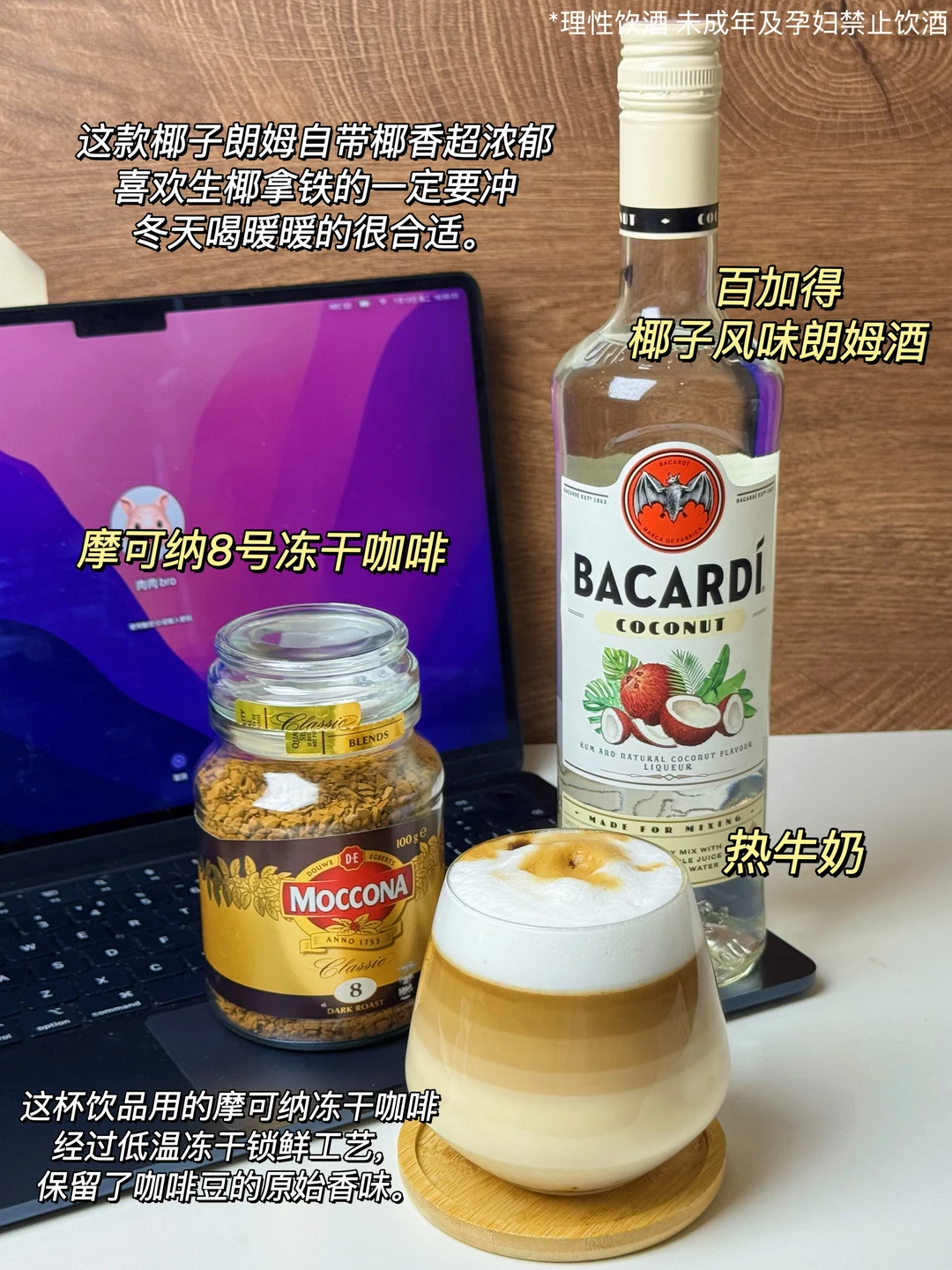 这杯饮品用的摩可纳冻干咖啡经过冻干锁鲜工艺,保留了咖啡豆的原始香味。这杯椰子朗姆自带椰香超浓郁,喜欢生椰拿铁的一定要冲!冬天喝暖暖的很合适。
