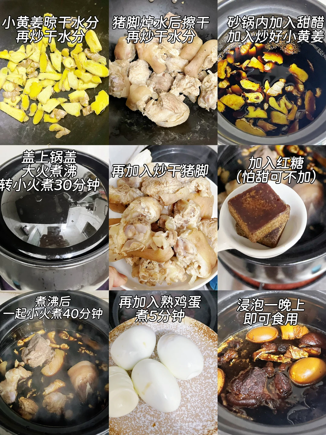 ✅食材:小黄姜、猪脚、鸡蛋、甜醋(海天/致美各1瓶)、红糖(可选)
