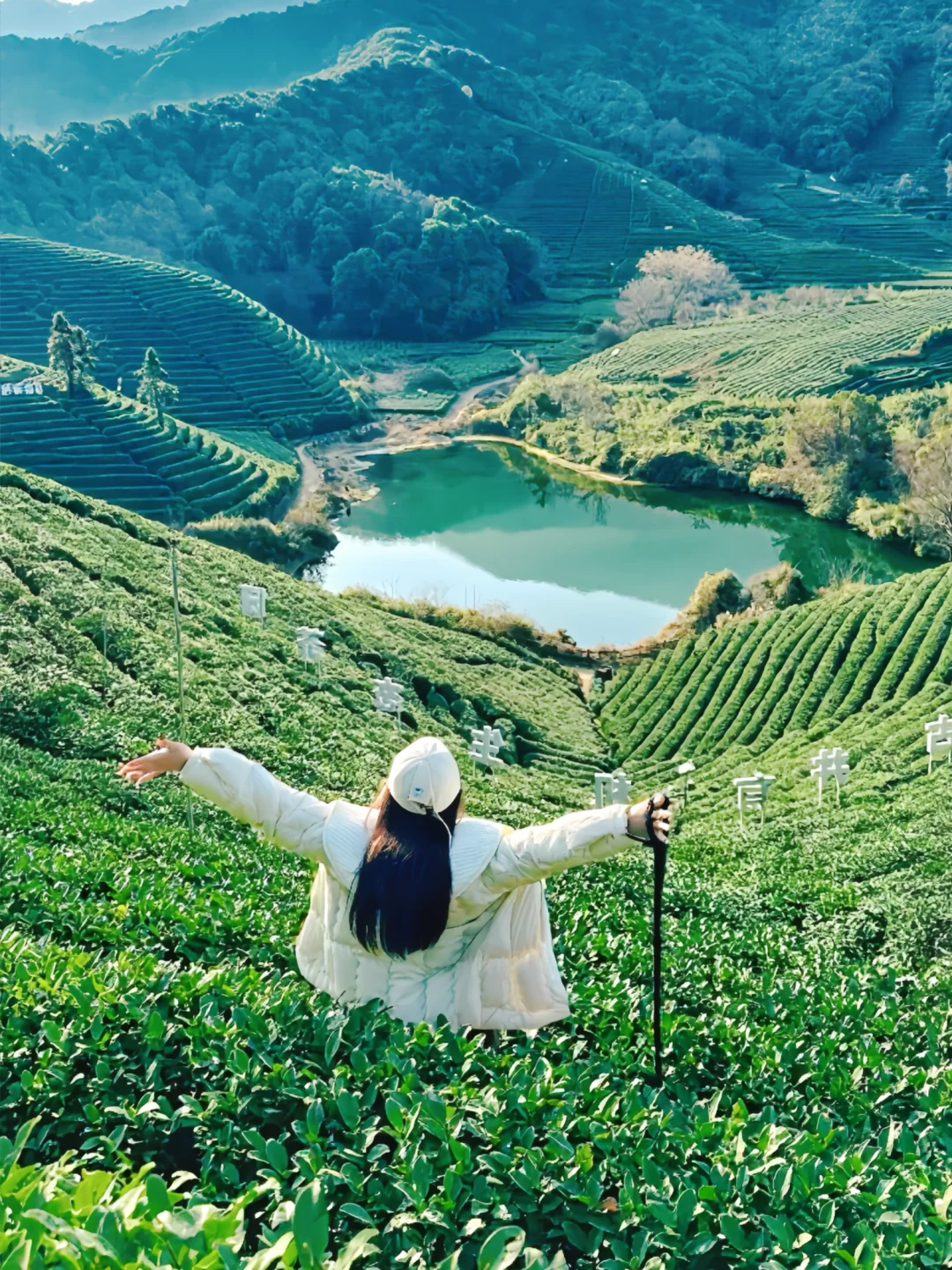 冬天的光明寺水库真的是宝藏秘境💫,没有旺季的人挤人,被万亩茶园环绕,湖水如翡翠般透亮,搭配错落的茶田与清幽步道,冬天来这里徒步真的很治愈!🥰