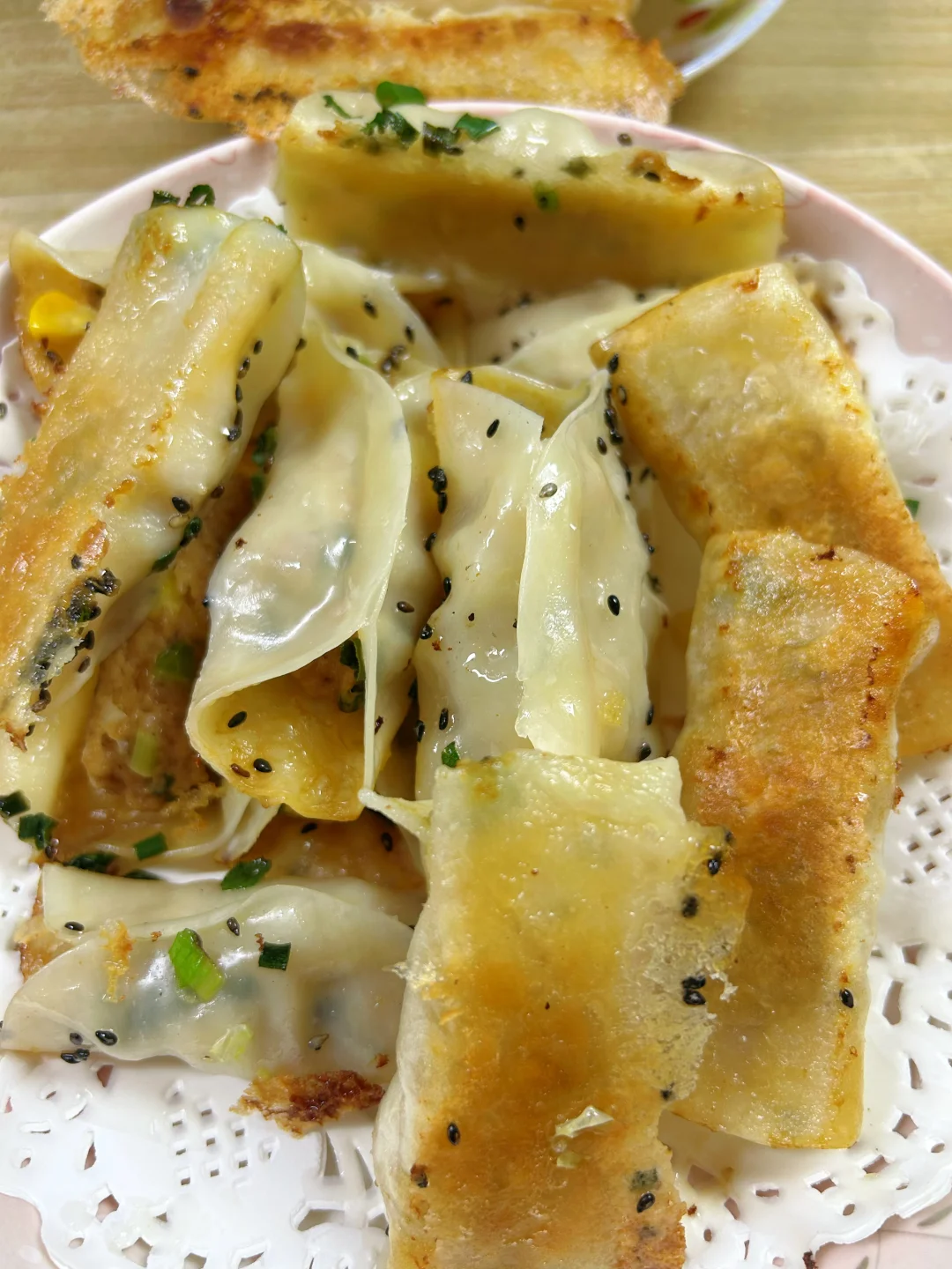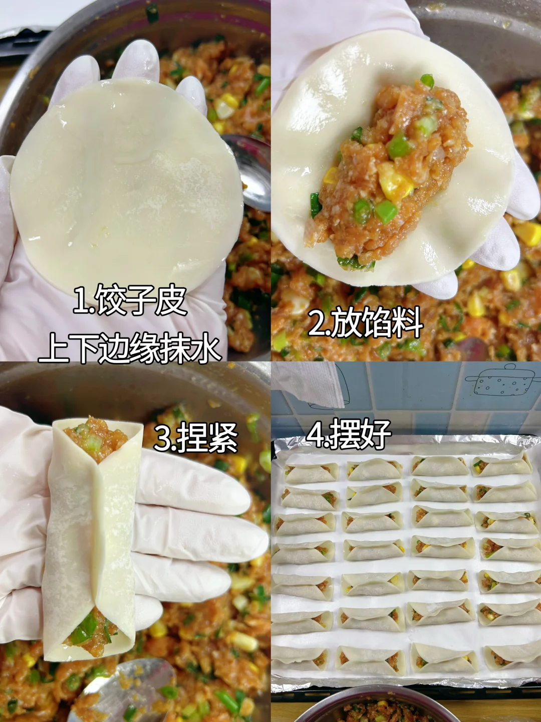 比做水煎包更简单的饺子皮锅贴,不用发面,调好馅就包,做早餐也来得及,好吃到全家都夸你。两端不收口,馅料更多,好看好吃。馅料不要加水,就不会有汤汁流出来煎黑的问题。肉处理得当,一点也不会柴,加了玉米粒口感更好。