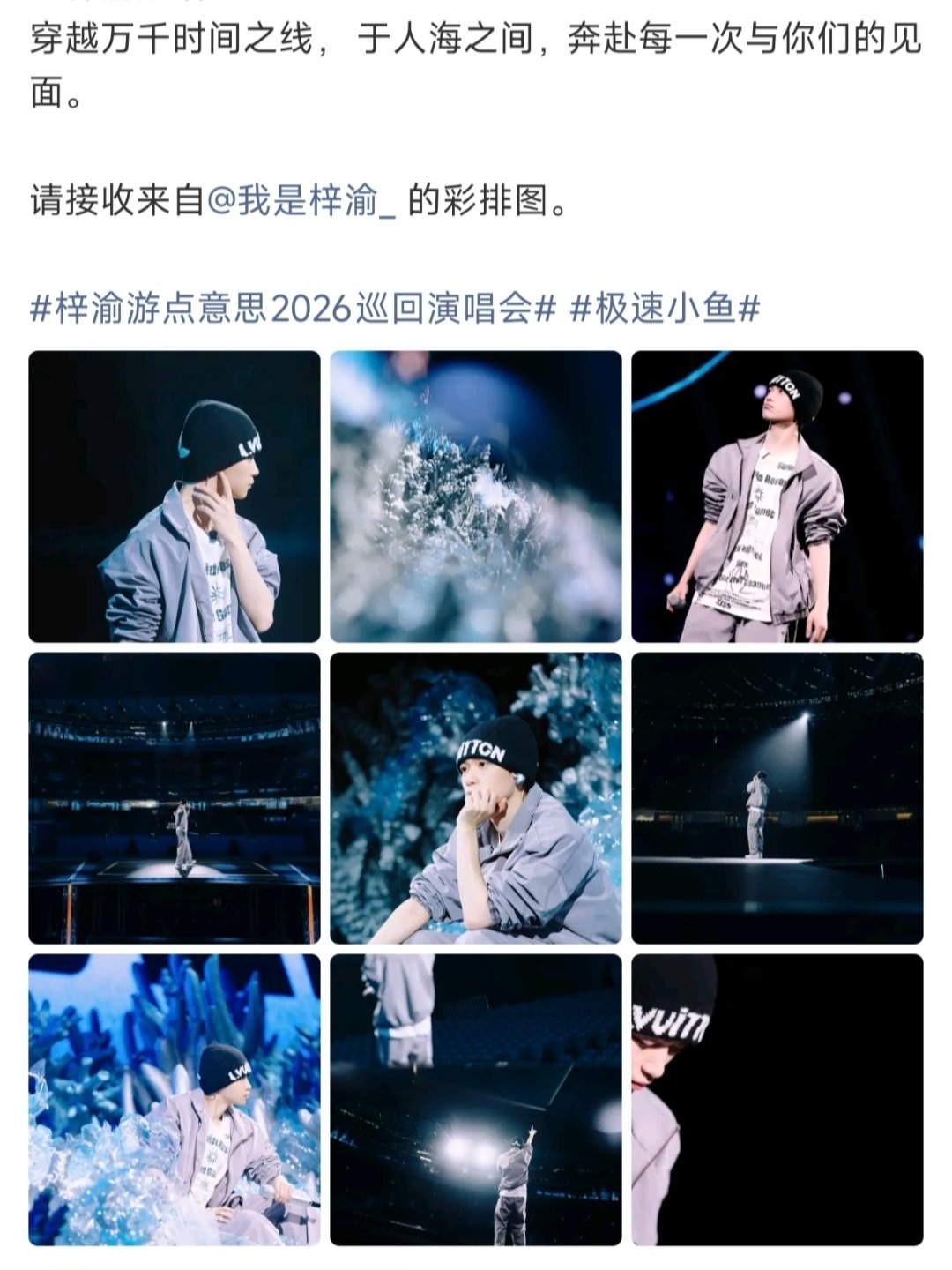 梓渝工作室 何意味一组彩排图,掀起千层浪。梓渝工作室今晨发布武汉演唱会彩排现场,紫色潮流造型、捂脸神秘瞬间,每一个细节都牵动粉丝的心。究竟是舞台惊喜预告,还是品牌合作伏笔?今晚,武汉见分晓。