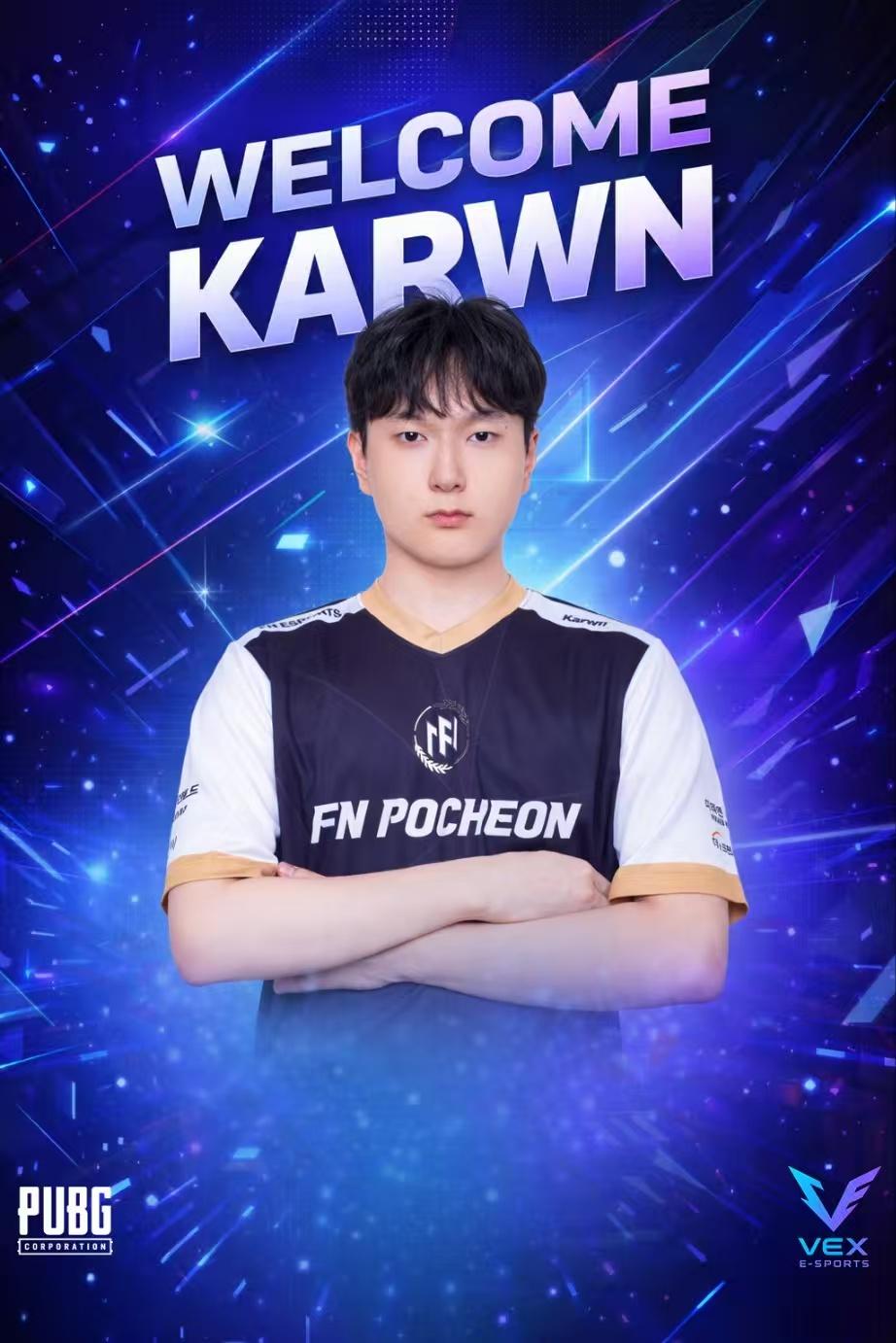 Karwn,金度允(KimDo-yoon)将于2026赛季加入VexE-Sports战队。请期待Karwn在新舞台上的表现和成长!