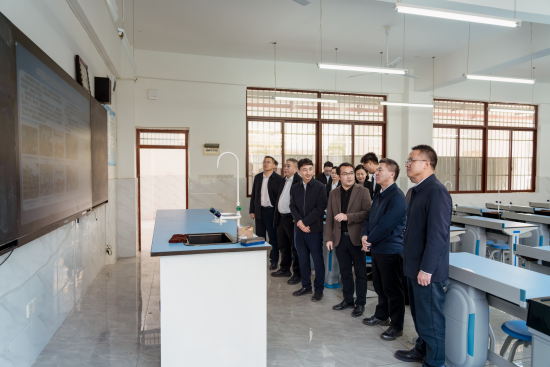 随后,刘桂清一行前往田林县新高中,了解新高中学生规模、硬件设施、教学理念、高考成绩等,询问中国电信智慧校园项目的实施情况。他强调,要充分发挥中国电信行业优势,积极运用ai天翼云眼应用等技术手段,进一步关注学生心理健康,在援建基础设施的基础上,推进国内优质教育资源的结对帮扶,进一步提高教育教学管理的智能化和现代化水平。