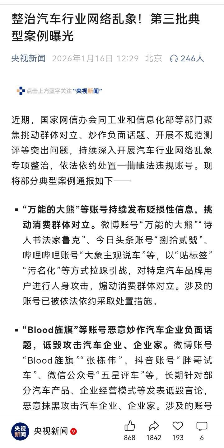一觉醒来,汽车媒体圈炸锅了。 万能的大熊、Blood旌旗等被央视点名了,拉踩引战