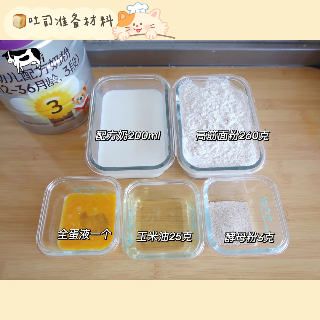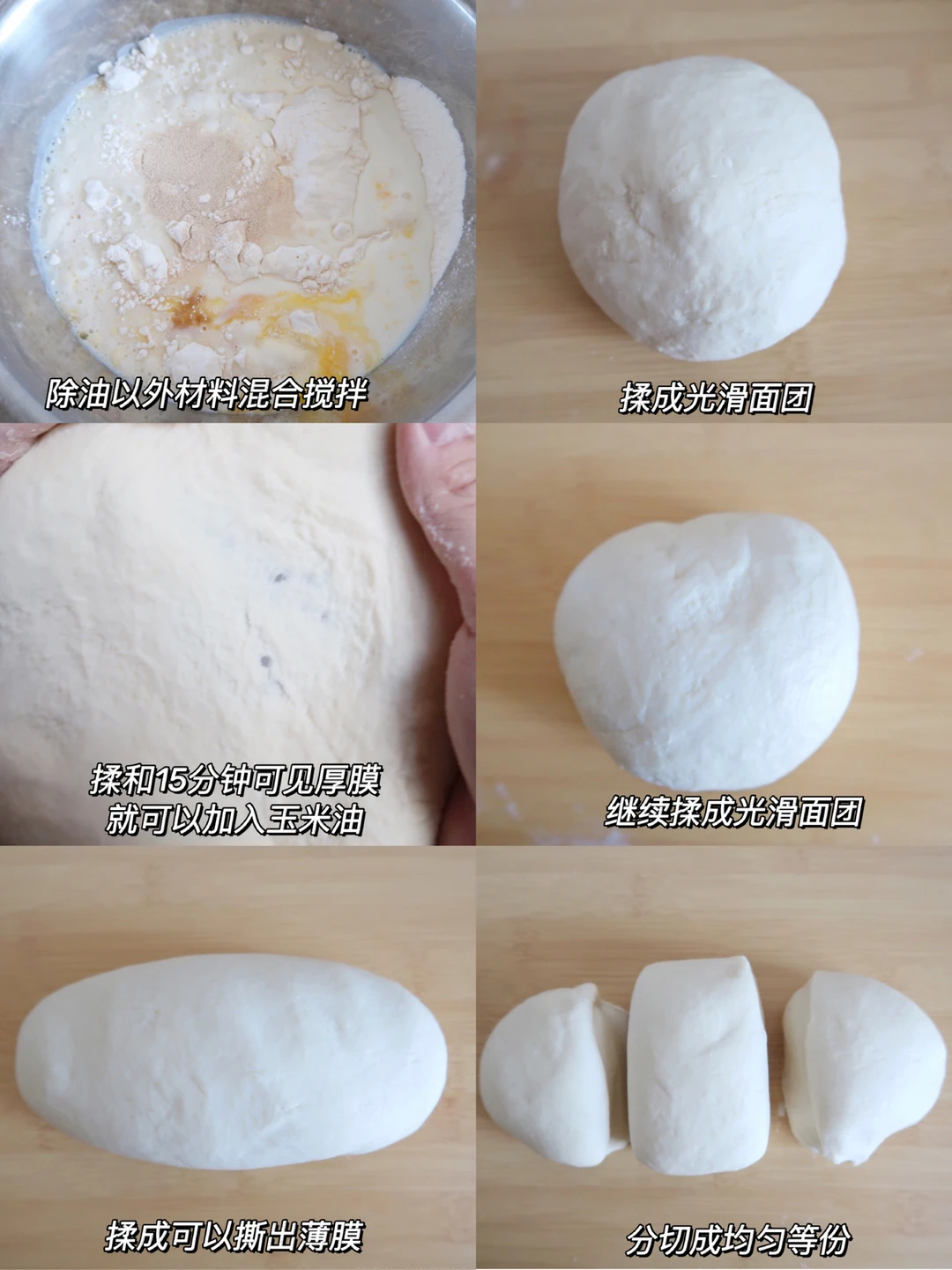 蛋液一个,a2配方奶200毫升,酵母3克,玉米油25克,高筋面粉260克