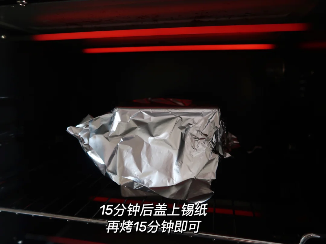 3、烤箱预热10分钟关火,底部放入一碗开水,吐司盒盖子盖好放入烤箱,醒发至7分满,上火180度预热10分钟后,烤30分钟即可!
