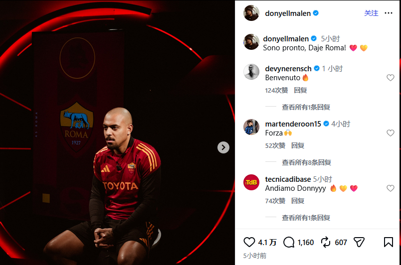 今天马伦发了一条加盟罗马的ins,用意大利语写道:“我已经准备好了,Daje R
