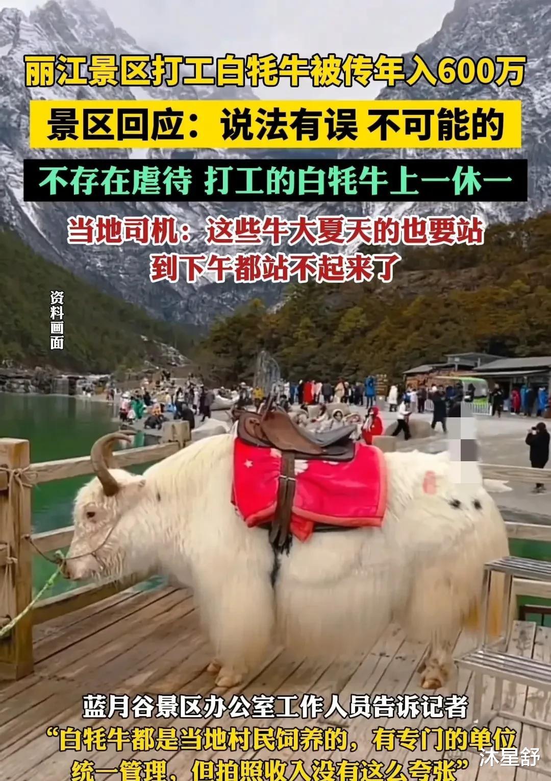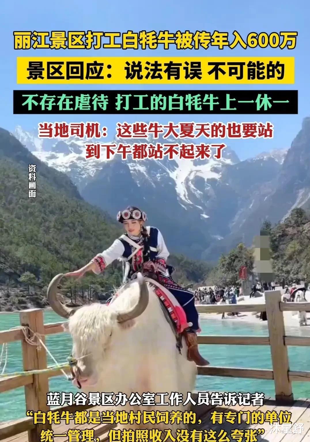 抱着好奇心,我也去查了查。结果发现,事情远没有表面那么简单。据记者实地采访景区工作人员和当地村民证实,600万的收入完全是无稽之谈! 那些在蓝月谷辛勤工作的白牦牛们,其实并没有那么“有钱”。它们的主要工作是供游客拍照骑乘,收入远低于网络上的传闻。 想想看,每天在景区里来回走动,供游客拍照,这工作强度虽然不算低,但和600万的年收入可真是天壤之别啊。