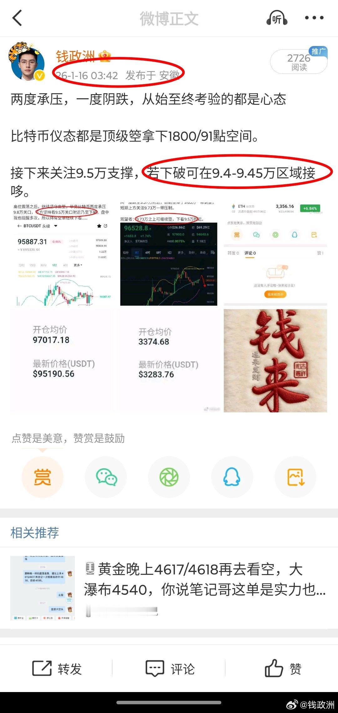 比特币说好的下破9.5万如期实现,空單在拿下1500来点之后直接反手多再度拿下1000来点。守得云开见月明,一切的坚守都是值得的。今日正值周末,继续看调整。