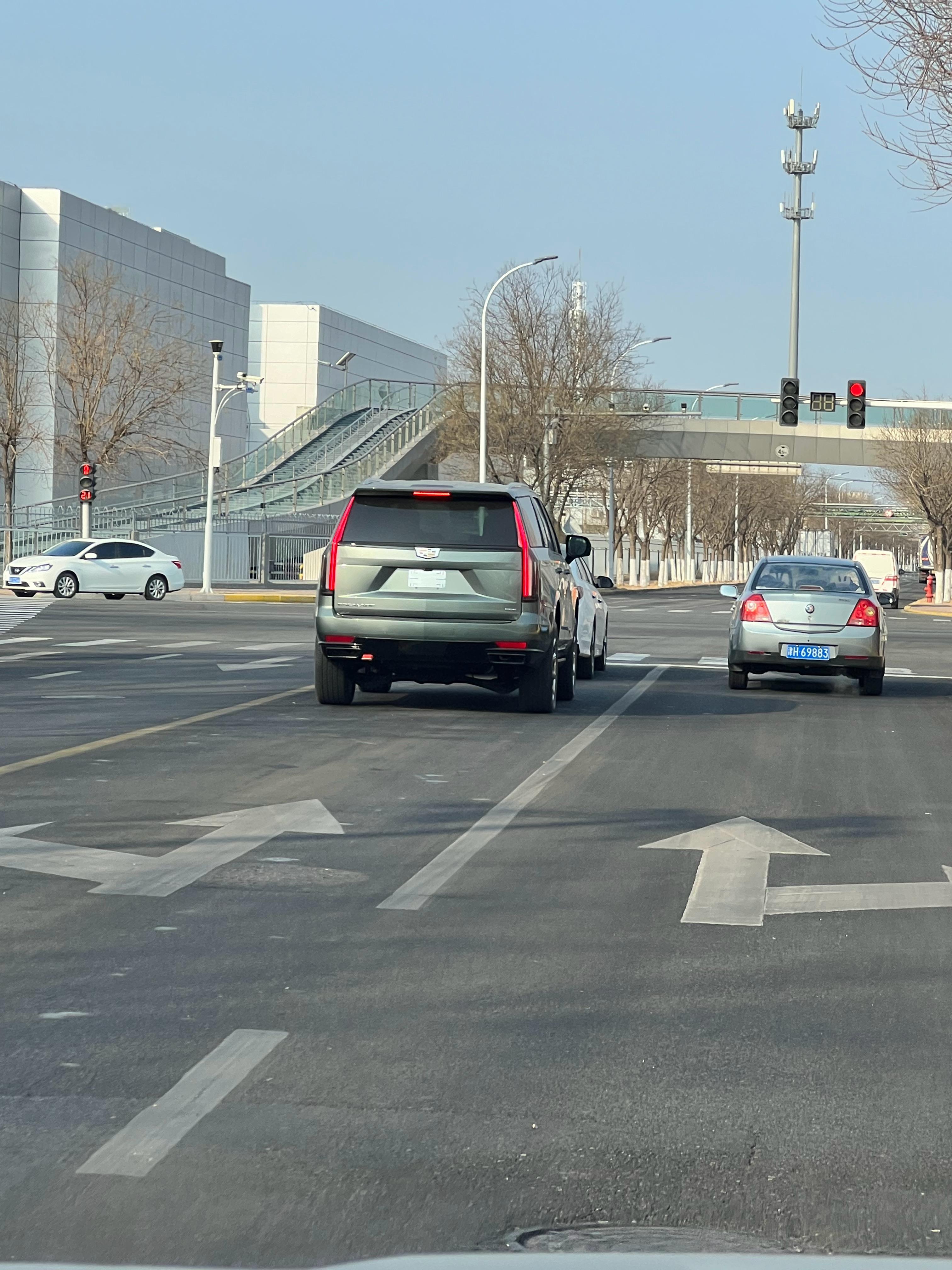 凯雷德的尾灯,辨识度太高了远看好像是台凯雷德,当他尾灯亮起的时候,确定了就是凯雷德。不过这颜色的凯雷德在国内真的是少见。 天津