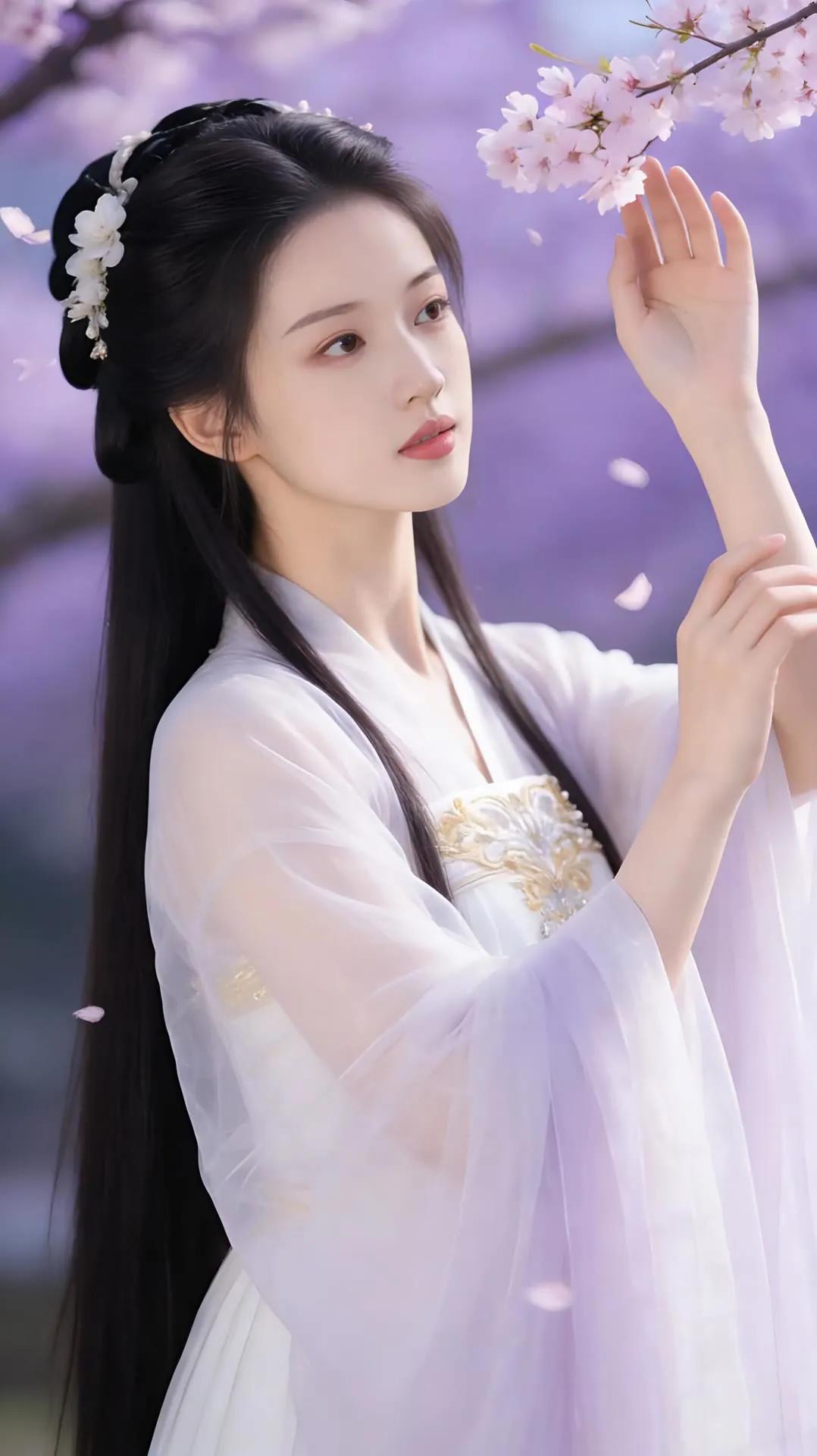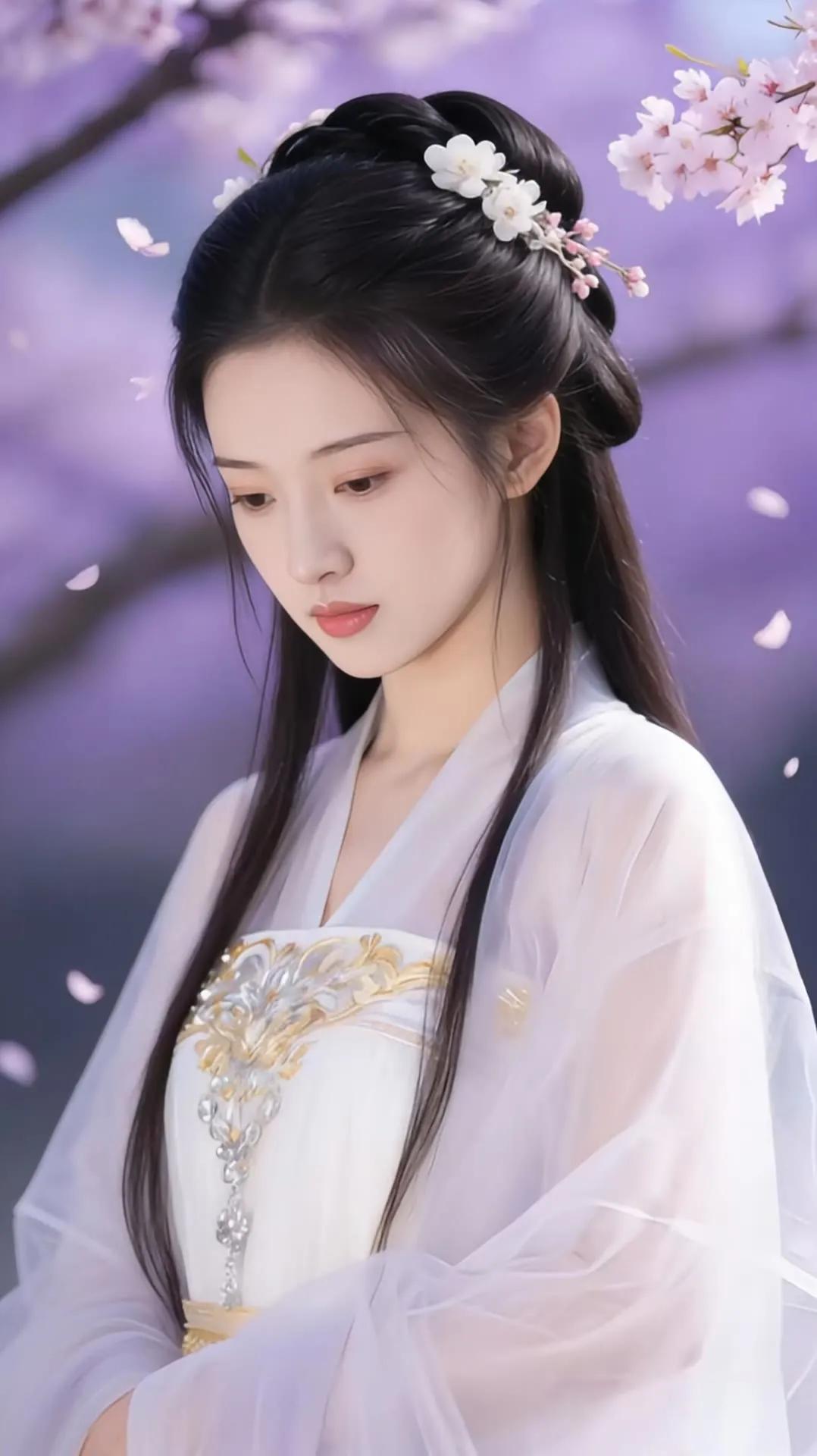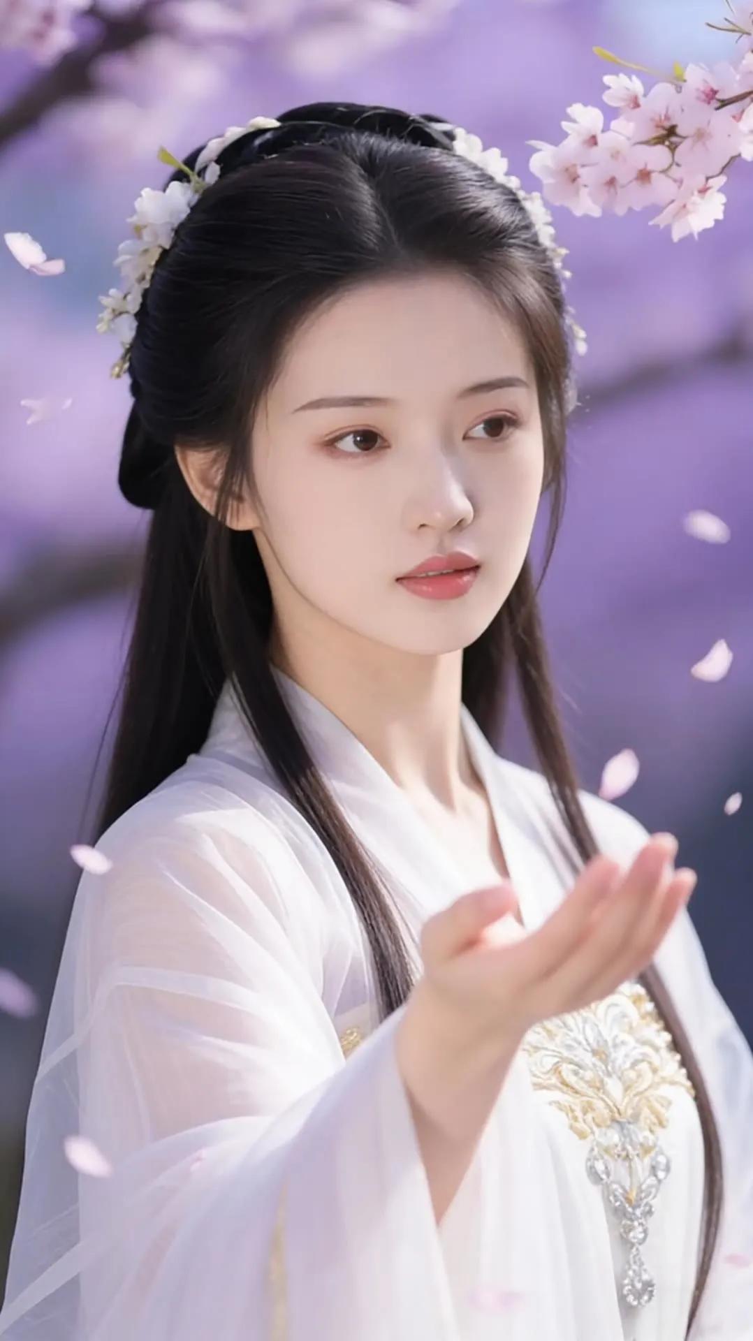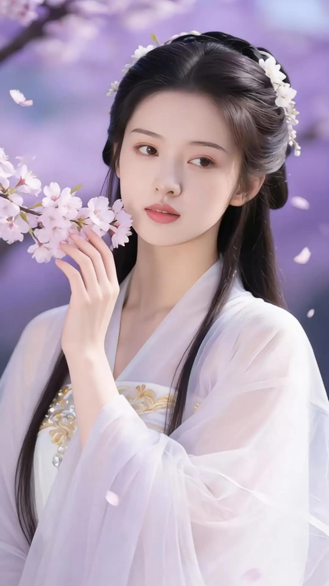 樱花树下,白衣少女,温柔如梦。