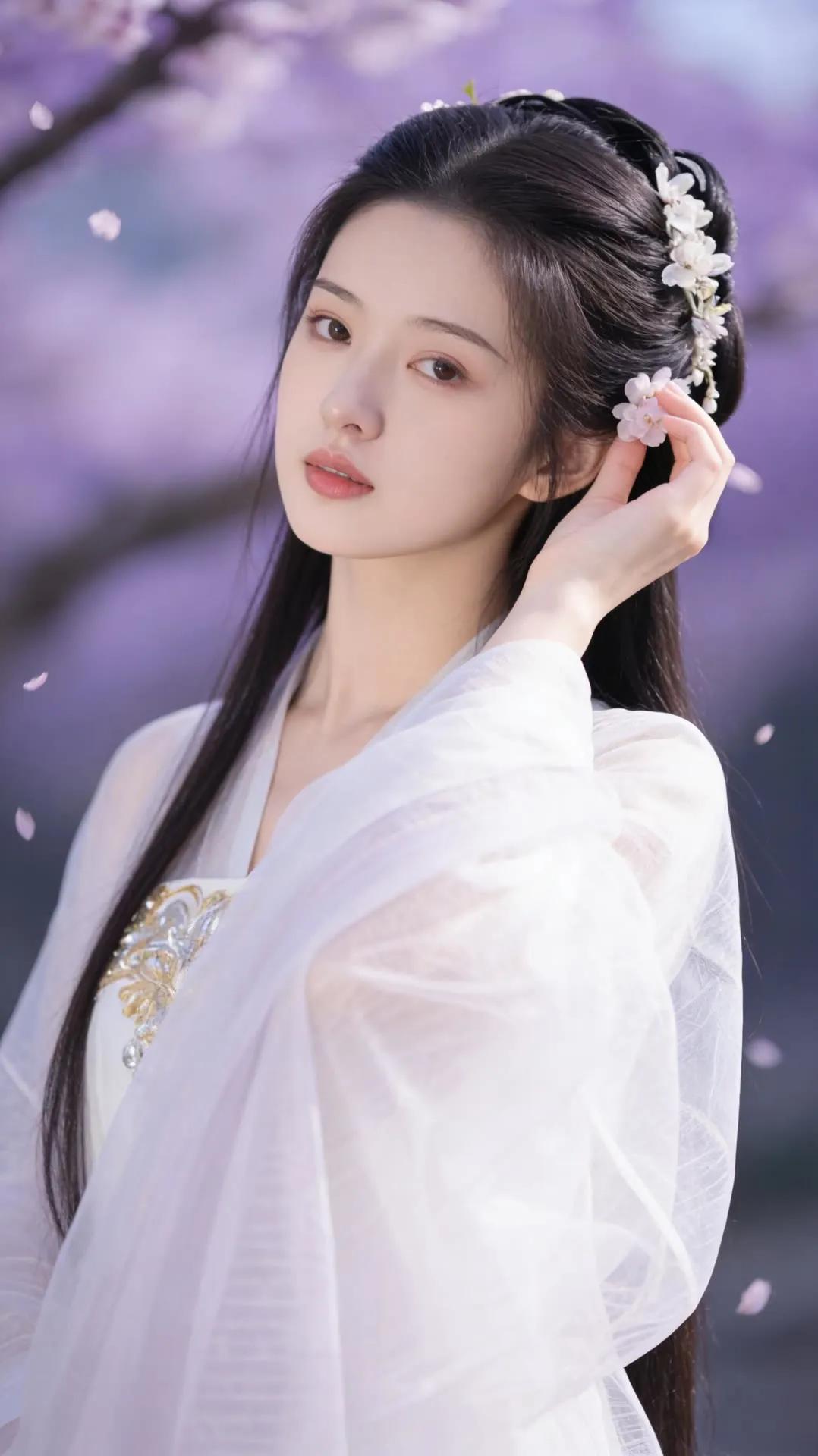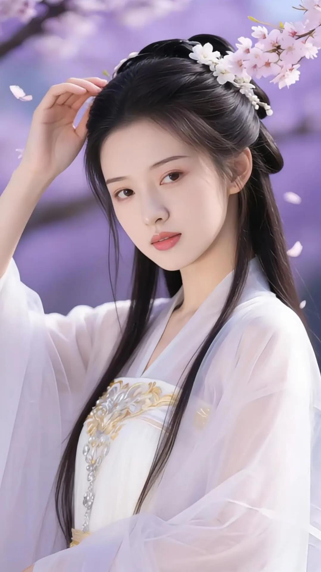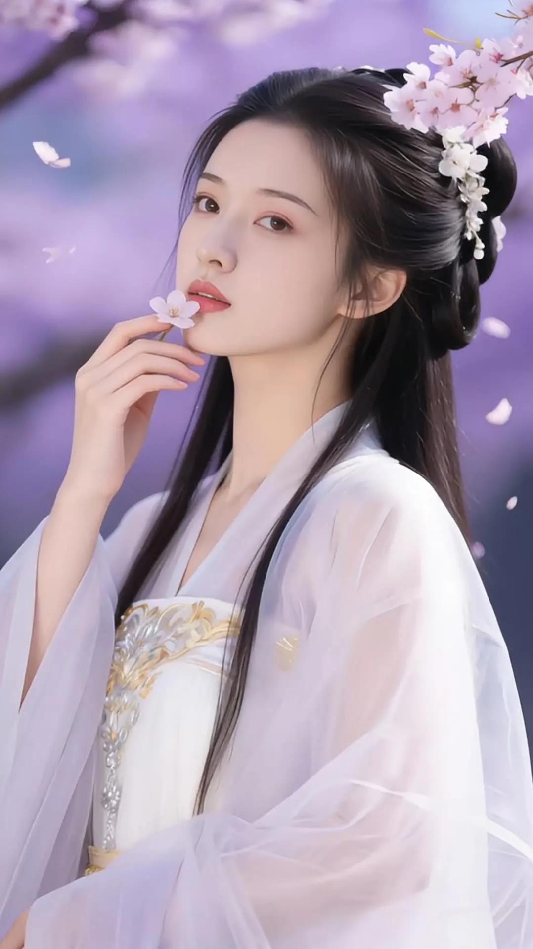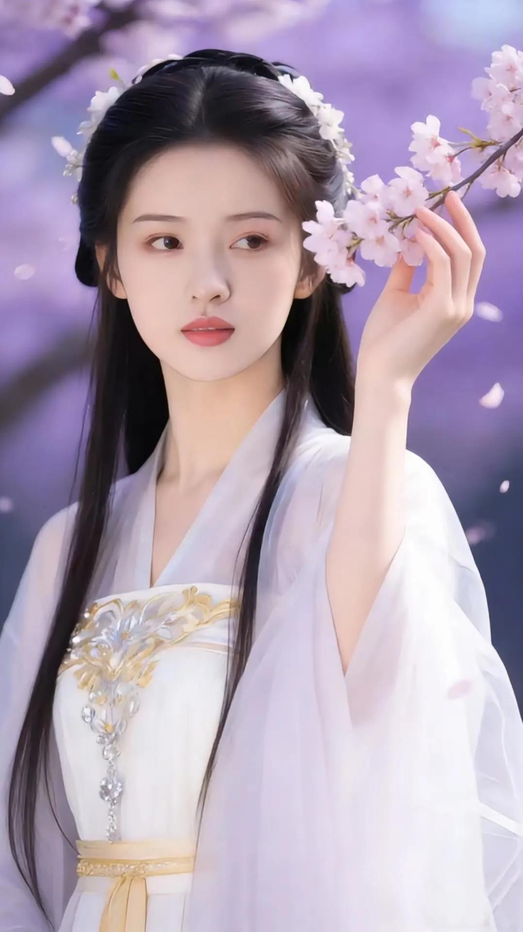 樱花树下,白衣少女,温柔如梦。