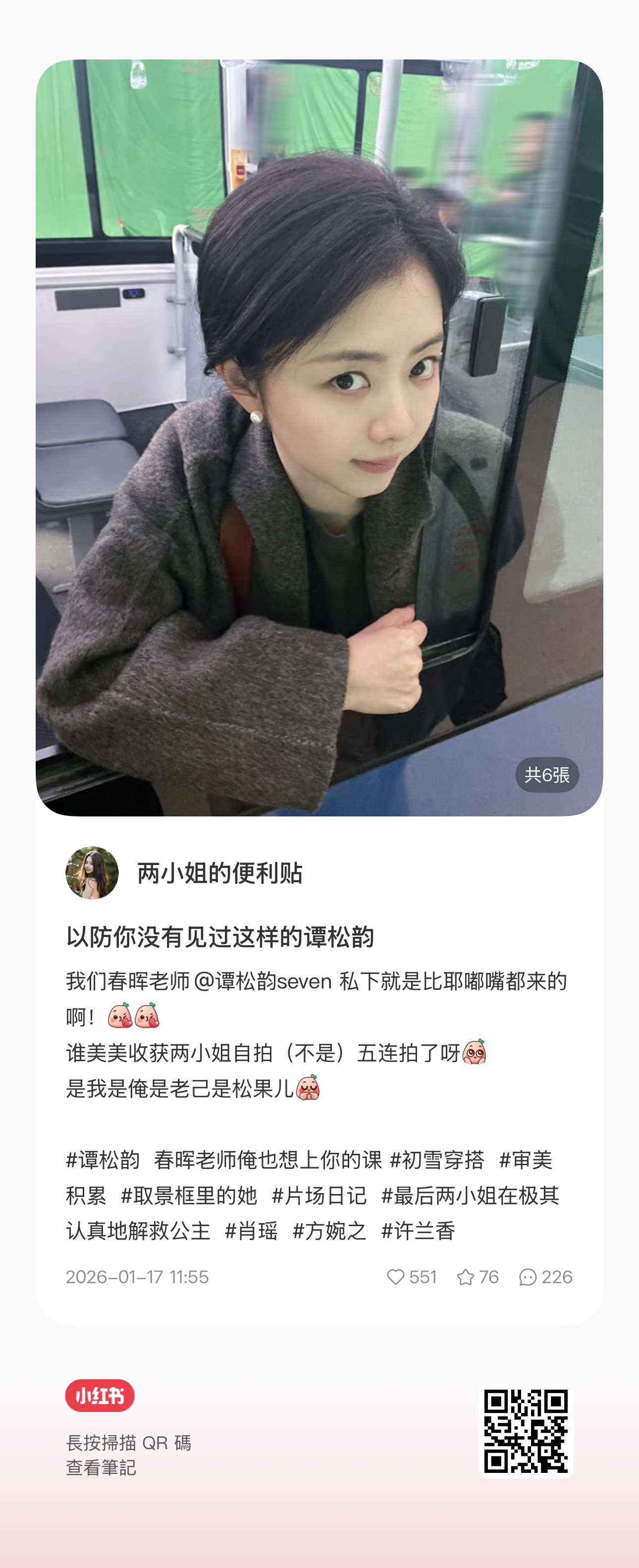 谭松韵春晖 2026.01.17 工作室📕以防你没有见过这样的谭松韵我们春晖老