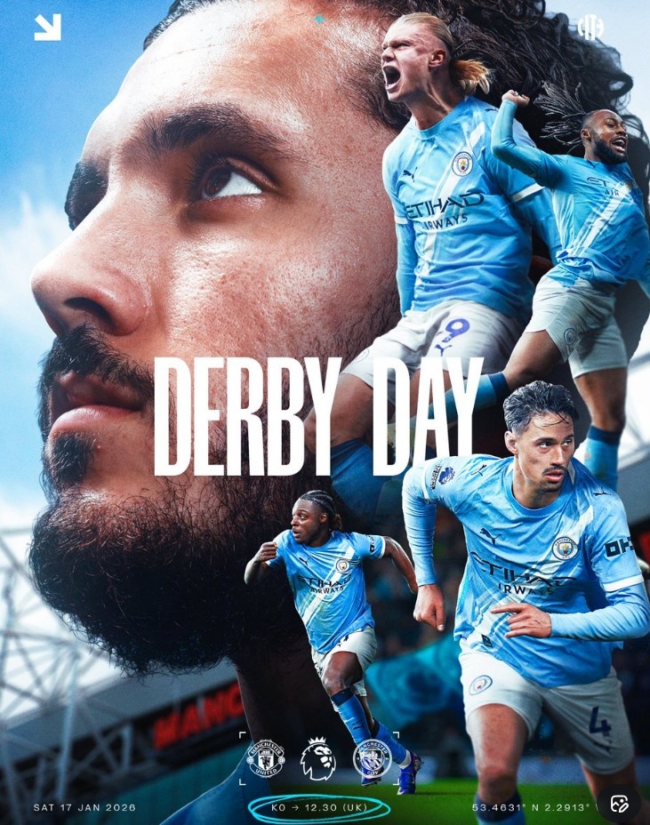 直播吧1月17日讯本轮英超将迎来焦点战曼市德比,曼城官方也晒出海报为本场比赛预热。