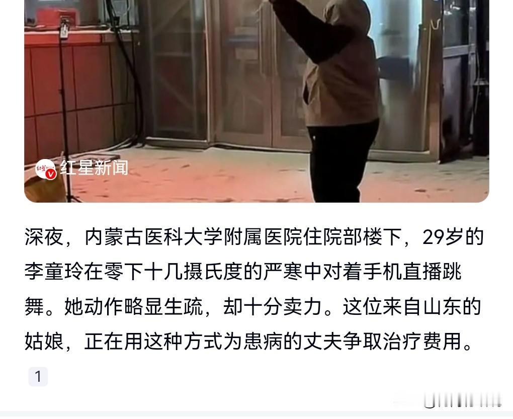 这真的是相濡以沫啊,这男子的老婆实在是太好了。 1月17日我在网上看到这么个事。 为救患病丈夫 ,女子深夜雪地直播跳舞。 虽然跳的不好,这不是重点,但是她的那个想救丈夫的心,真的是感动了大家。 网上说已经筹了十几万了。 相信还会有更多的人捐款。 希望男子能够早日康复。