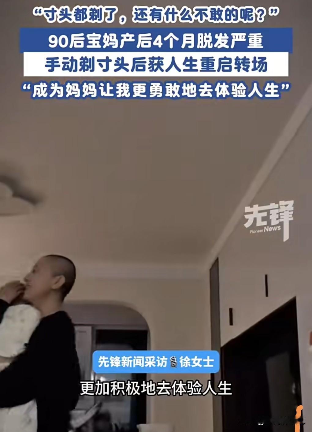 人能够做到让自己愉悦,那真的是一件特别幸福的事情,不要过多的在乎他人的眼光。 我是一个脱发者,但是我仍然选择现在开始留长发,还在做着最后的倔强,但是我很享受我的长发,我再也不会选择剃寸头了。 1月17日在网上看到这么个事。 90后宝妈产后脱发剃寸头,剃完之后,她感觉非常的快乐。 快乐就对了,在这个社会上最重要的是先让自己开心,才有能力让别人也开心。
