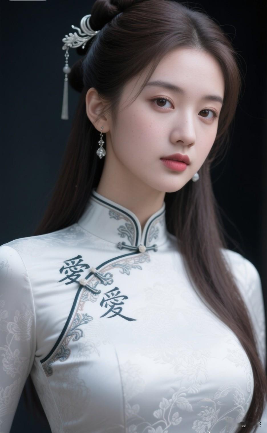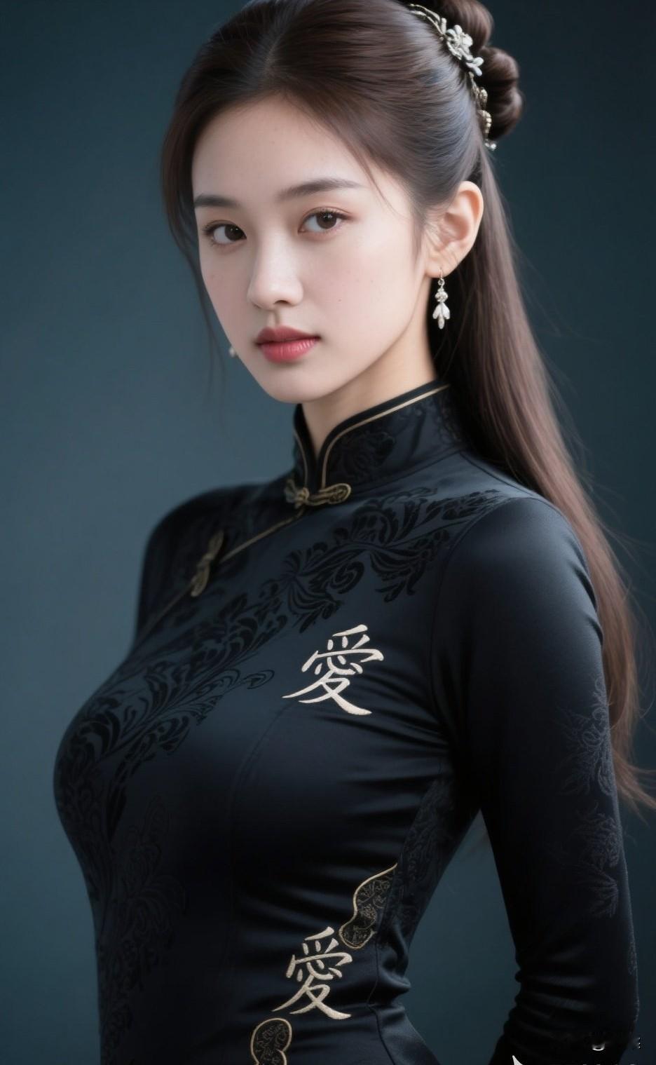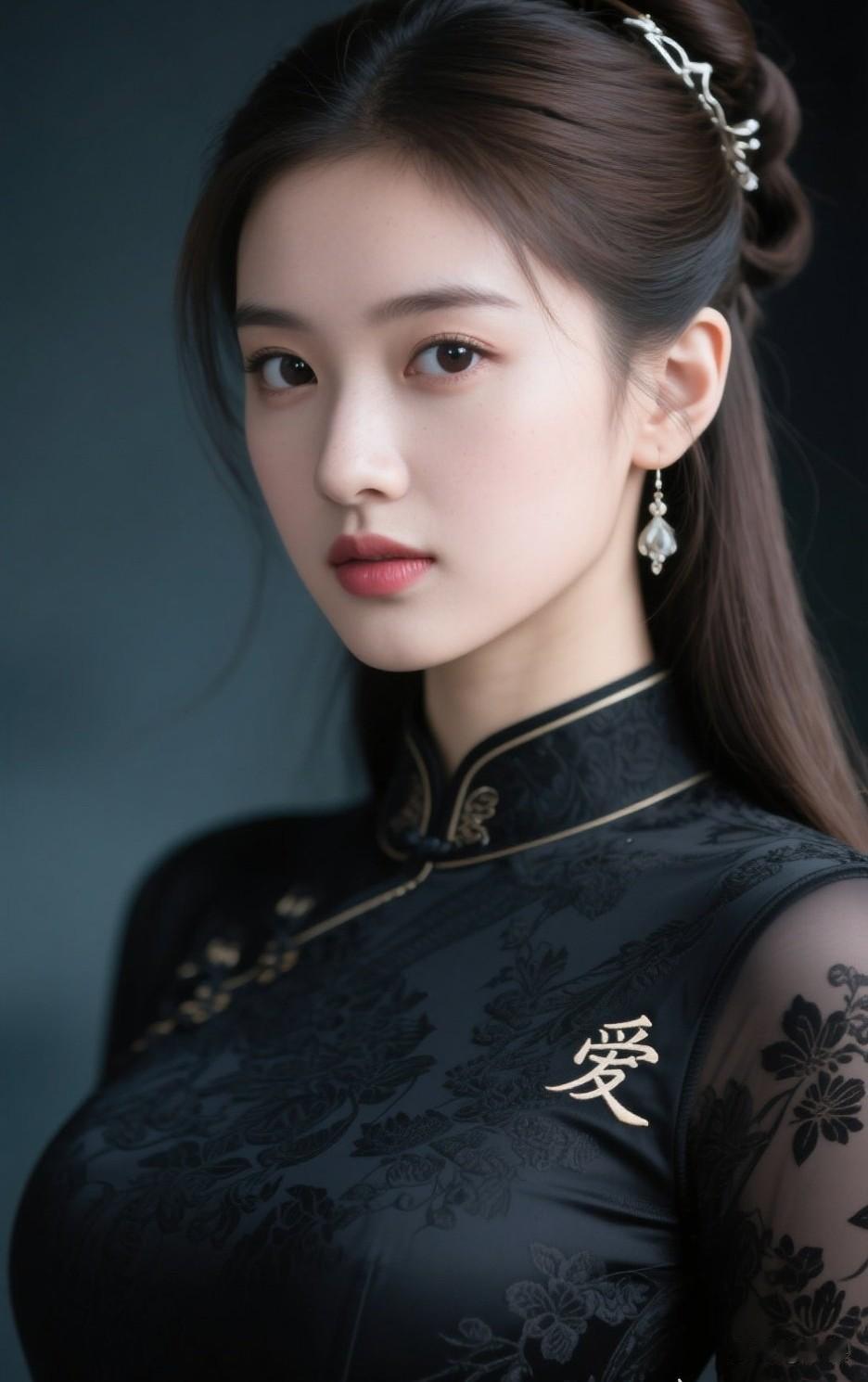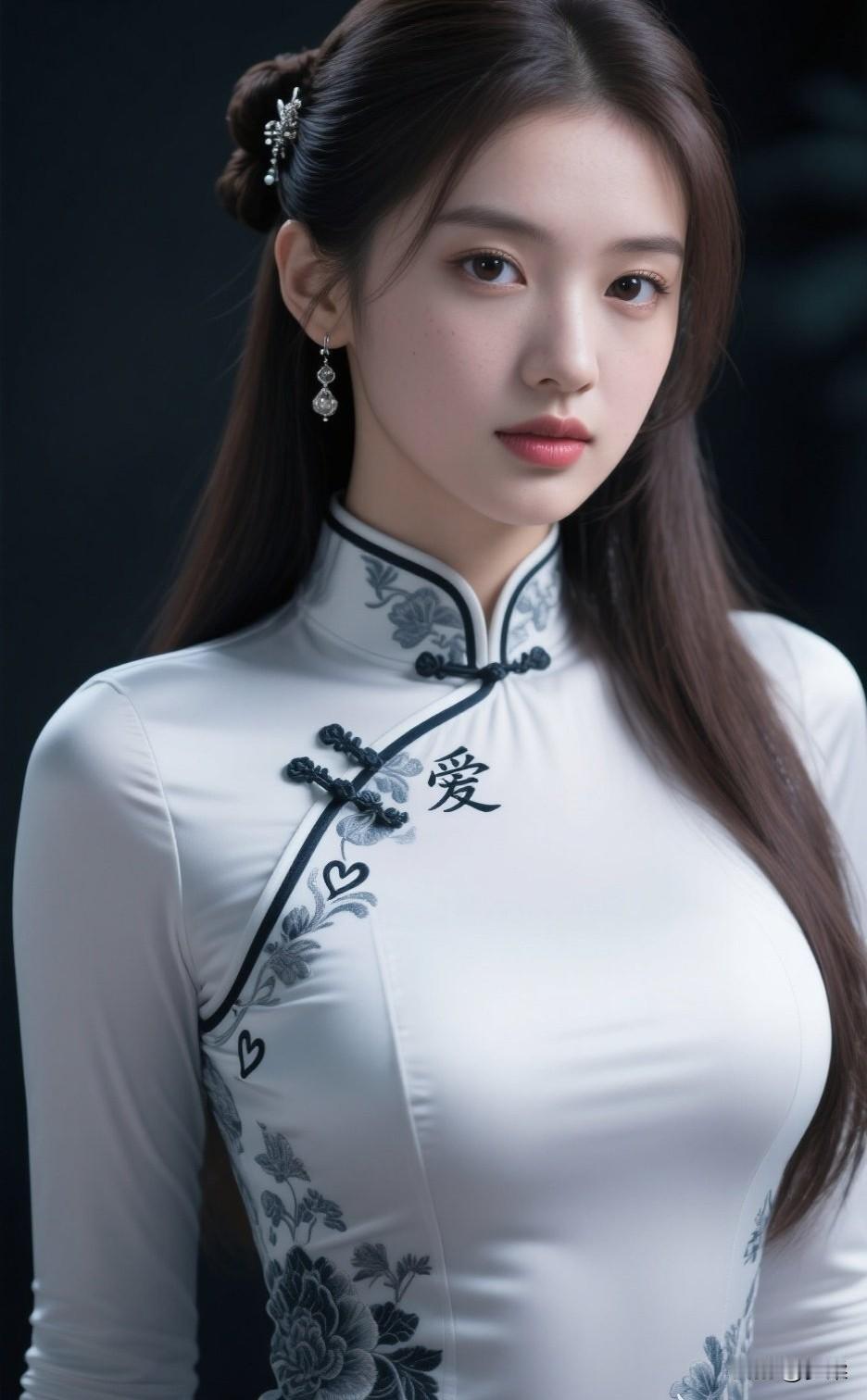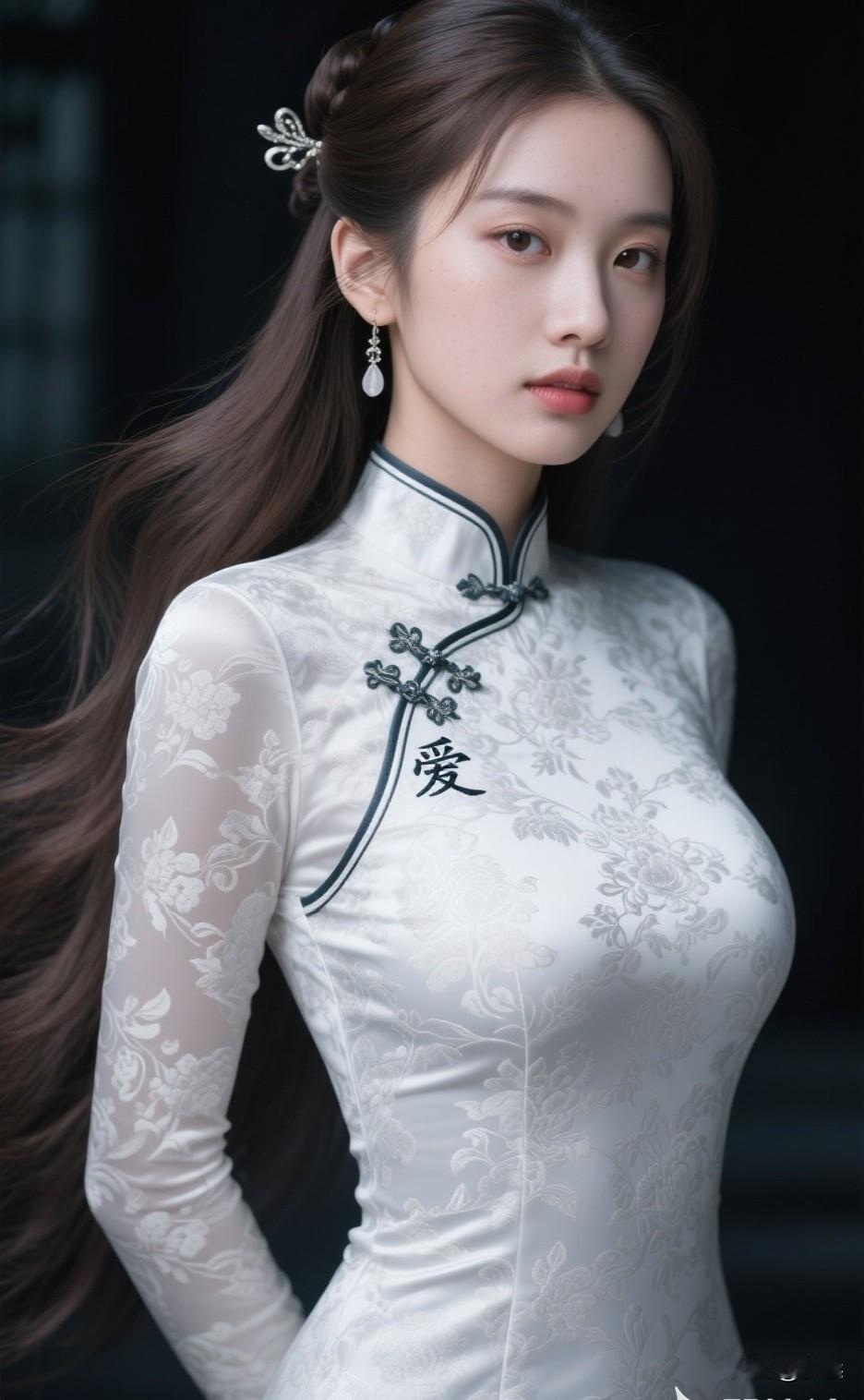 古典优雅,黑白色调旗袍,东方韵味,爱字刺绣,唯美古装,惊艳亮相。