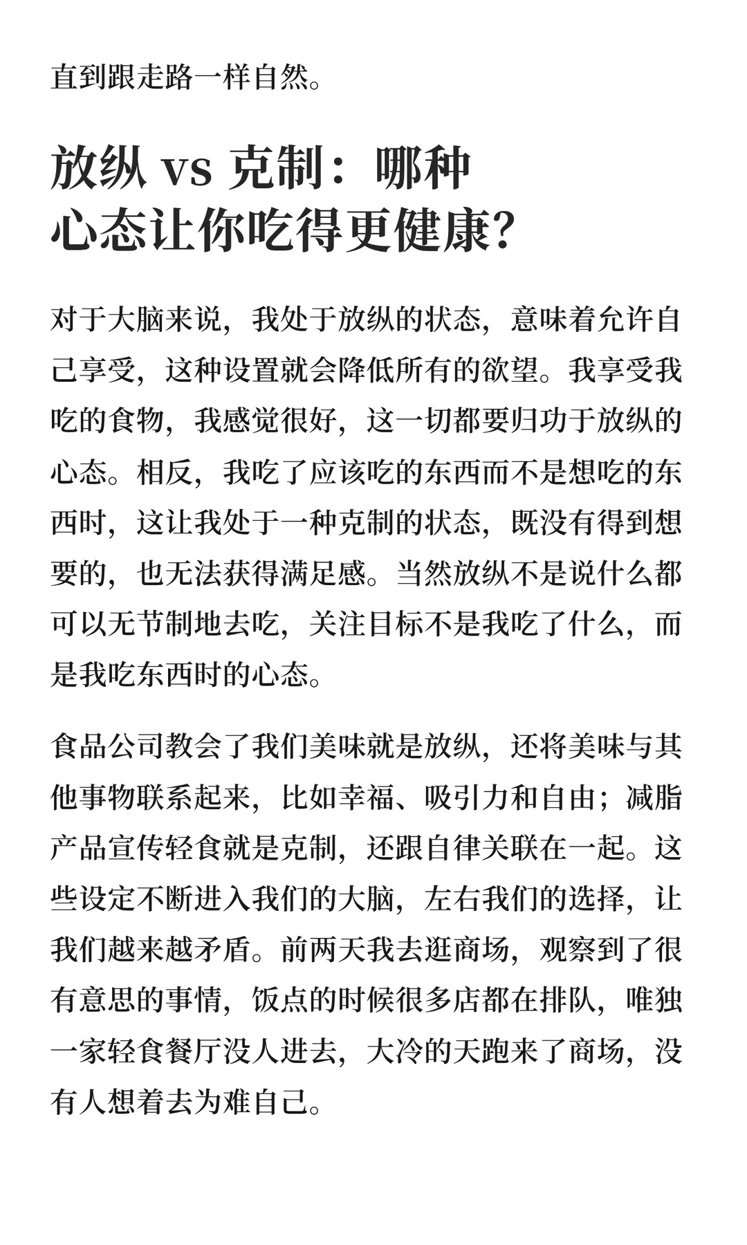 吃也一样:“放纵心态”享受美食,身体更满足;“克制心态”吃“应该吃的”,反而欲望更强。