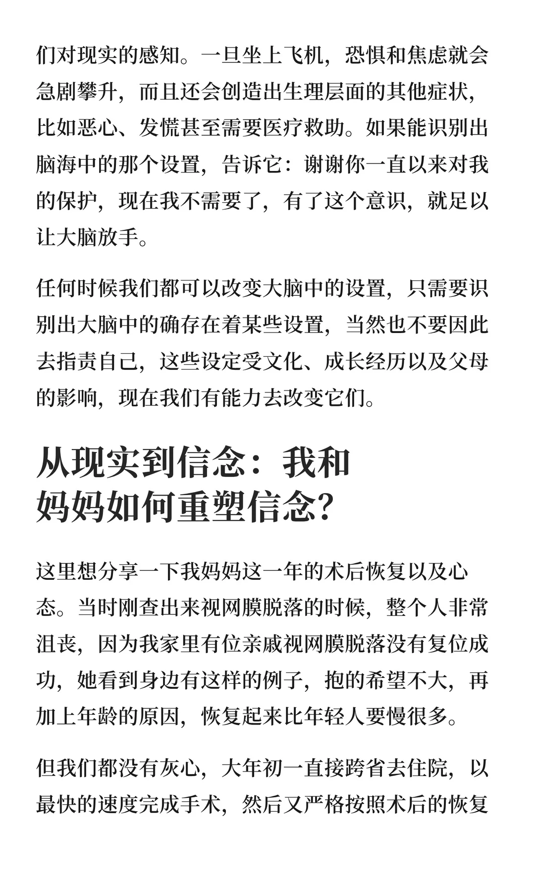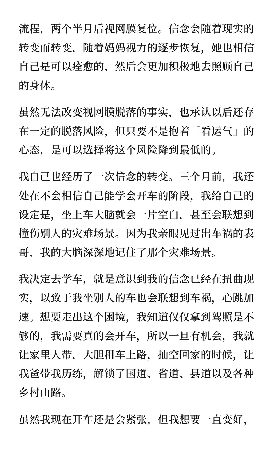 妈妈视网膜脱落,曾因亲戚失败案例而沮丧,但我们选择相信能恢复——信念随现实转变,术后严格护理,视力真的逐渐好转。