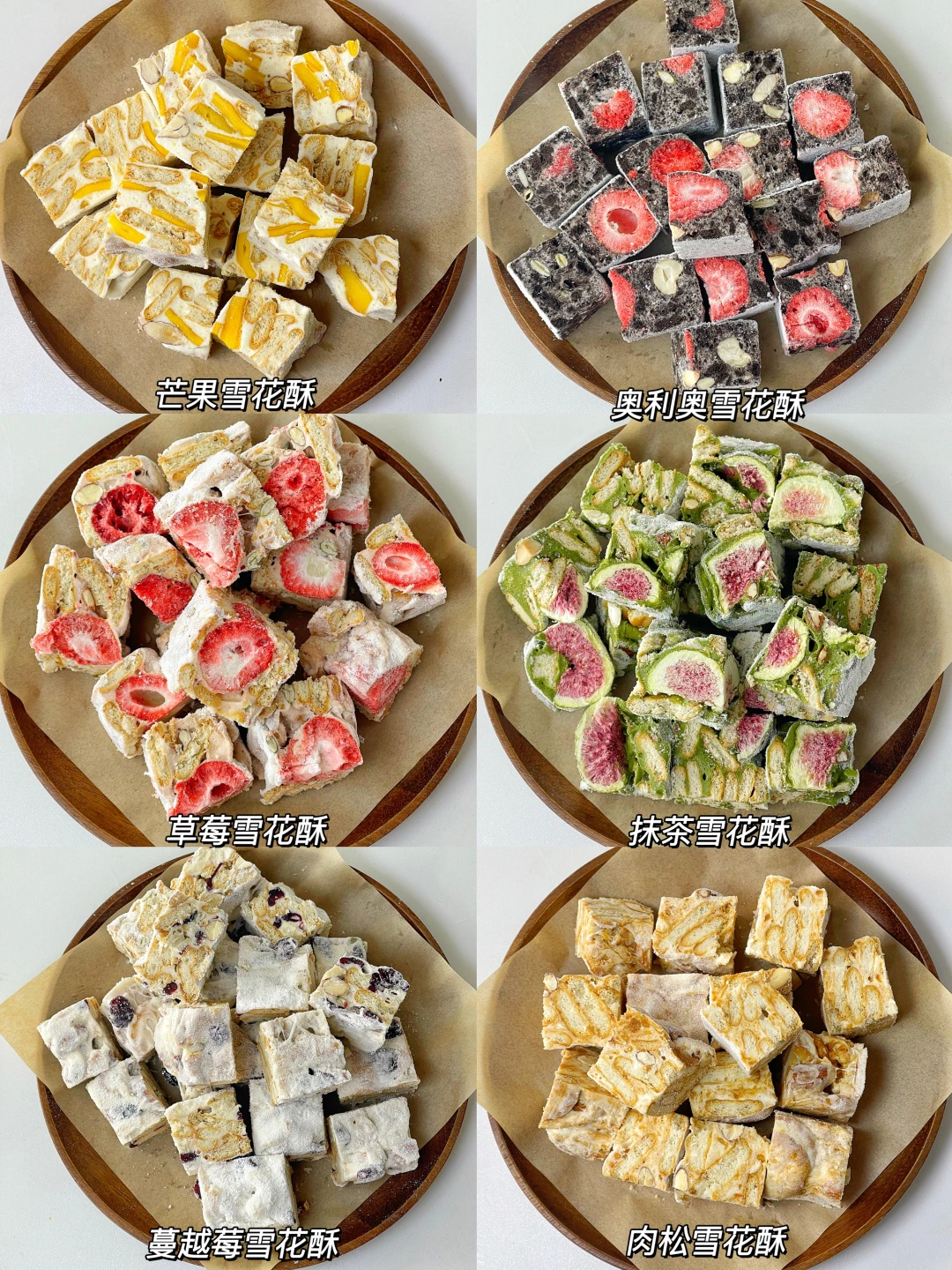 快过年了,小零食可以安排起来了[偷笑R]今天分享好吃又易做的6款雪花酥做法[斜眼R]