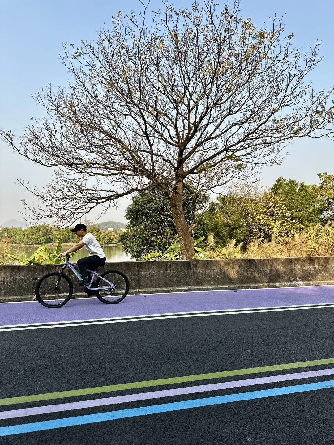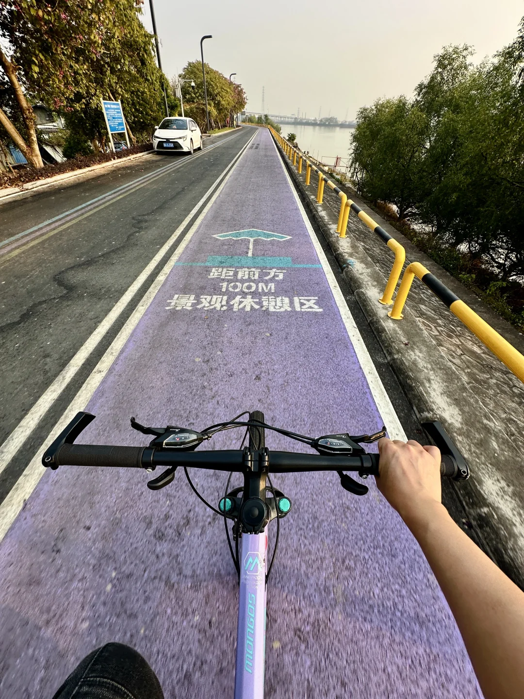 休息日不止城市citywalk 还可以来一趟避世环岛骑行🚲 全程紫色骑行道,沿着环岛骑一圈 也是很舒服哒[哇R] 紫坭环岛路,全程11km,沿途有休息站 边骑边玩,半天时间,路面友好 🚲:宝墨园—南粤苑—紫泥堂创意园—沿紫色骑行道环岛—宝墨园 📍:宝墨园,在门口就有很多租自行车🚲的。