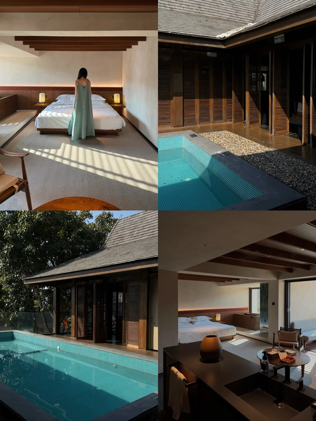 这次住的这家在告庄,一家闹市里的度假酒店。傣楼斜屋顶、柚木地板、绿色小砖、羊毛地毯、泳池美学、黑色莱姆石…每个都踩在我的审美点上。空间里的香茅草味道也很安宁、愉悦。以前觉得旅游完很累,这次去西双版纳反而是得到了很好的休息,慢悠悠走完了这个地方,很适合懒人放松度假。
