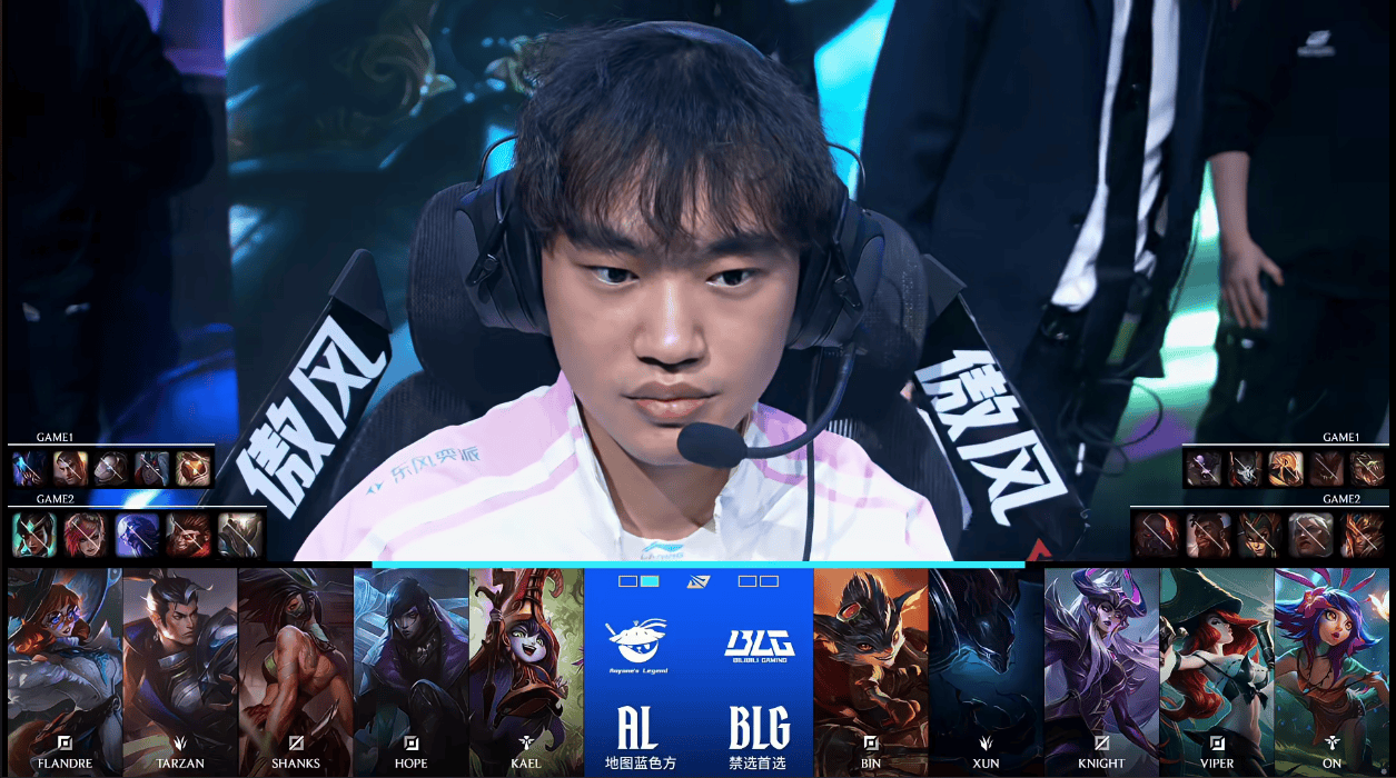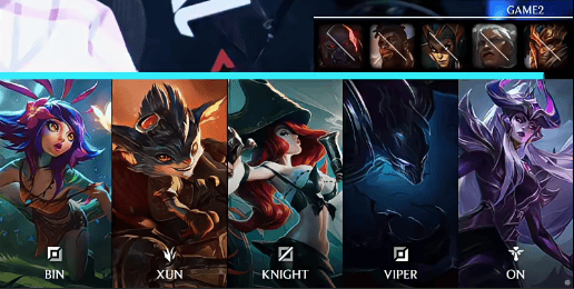 BLG选用:Bin兰博;Xun梦魇;Knight辛德拉;Viper女枪;ON妮蔻