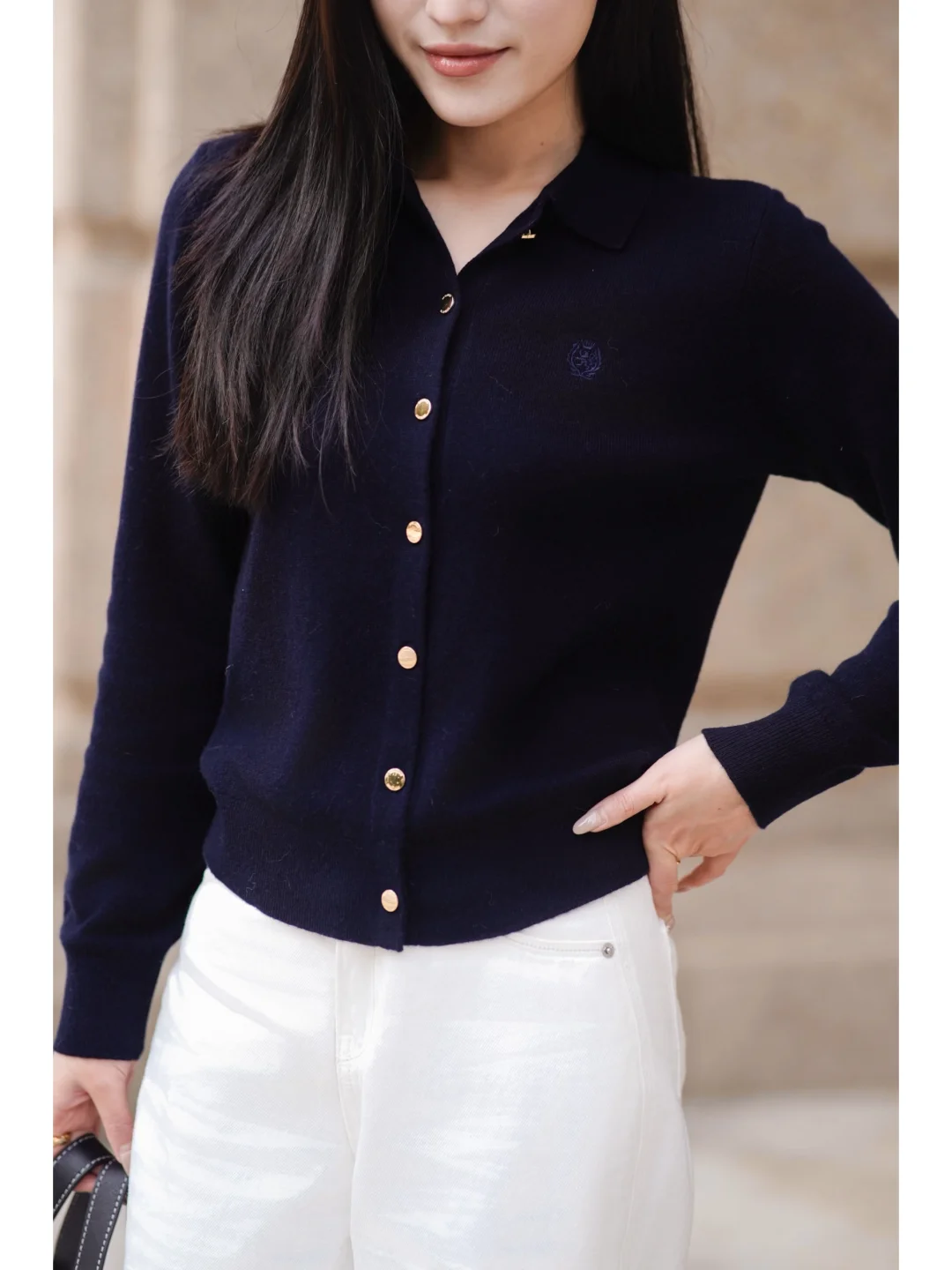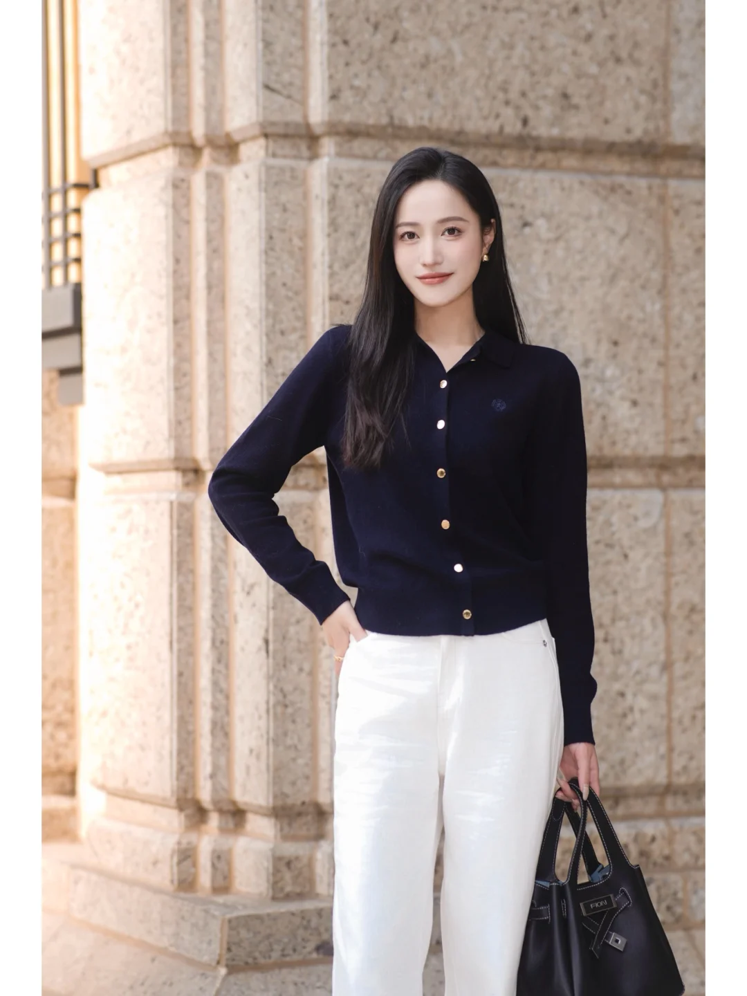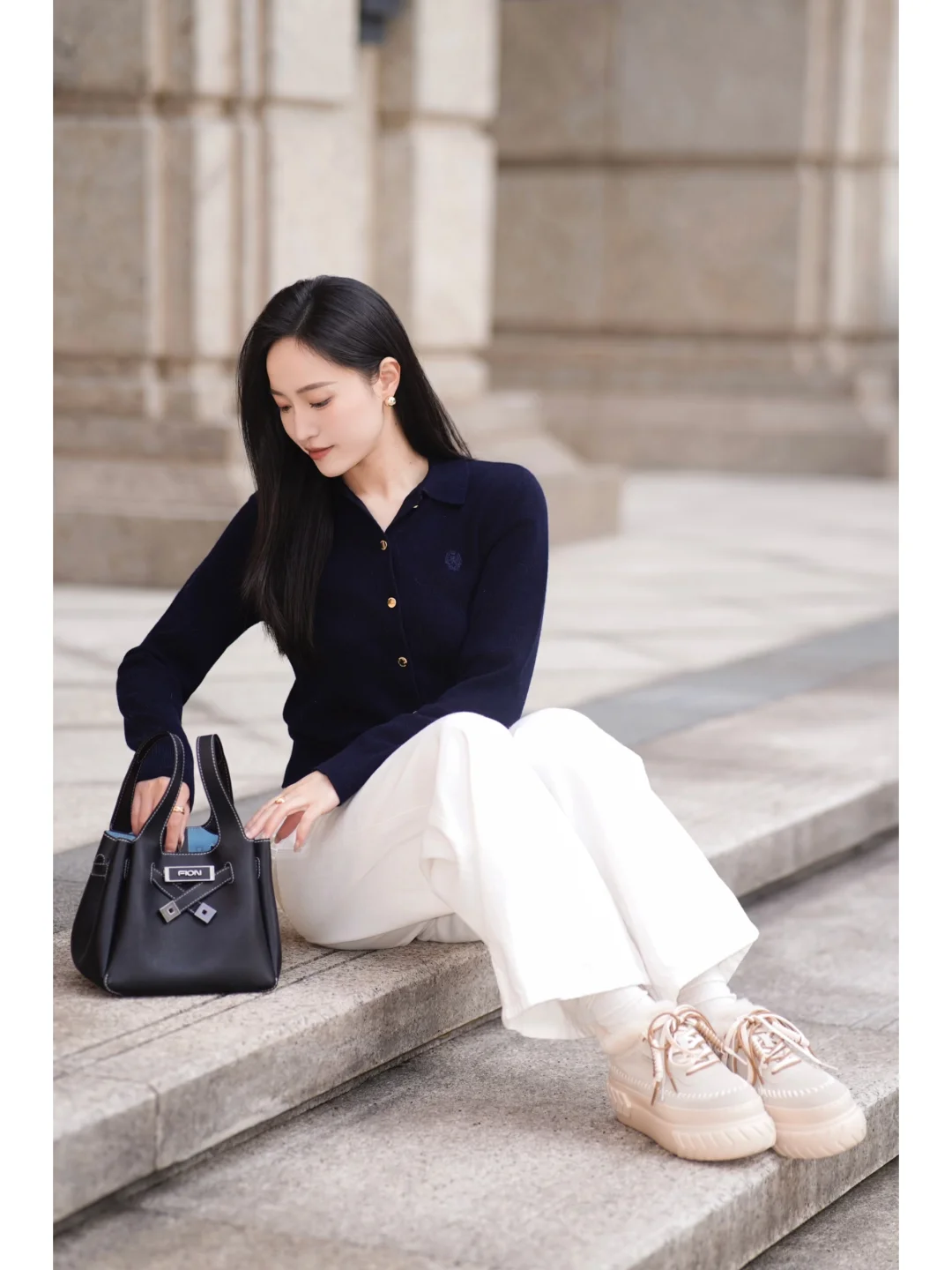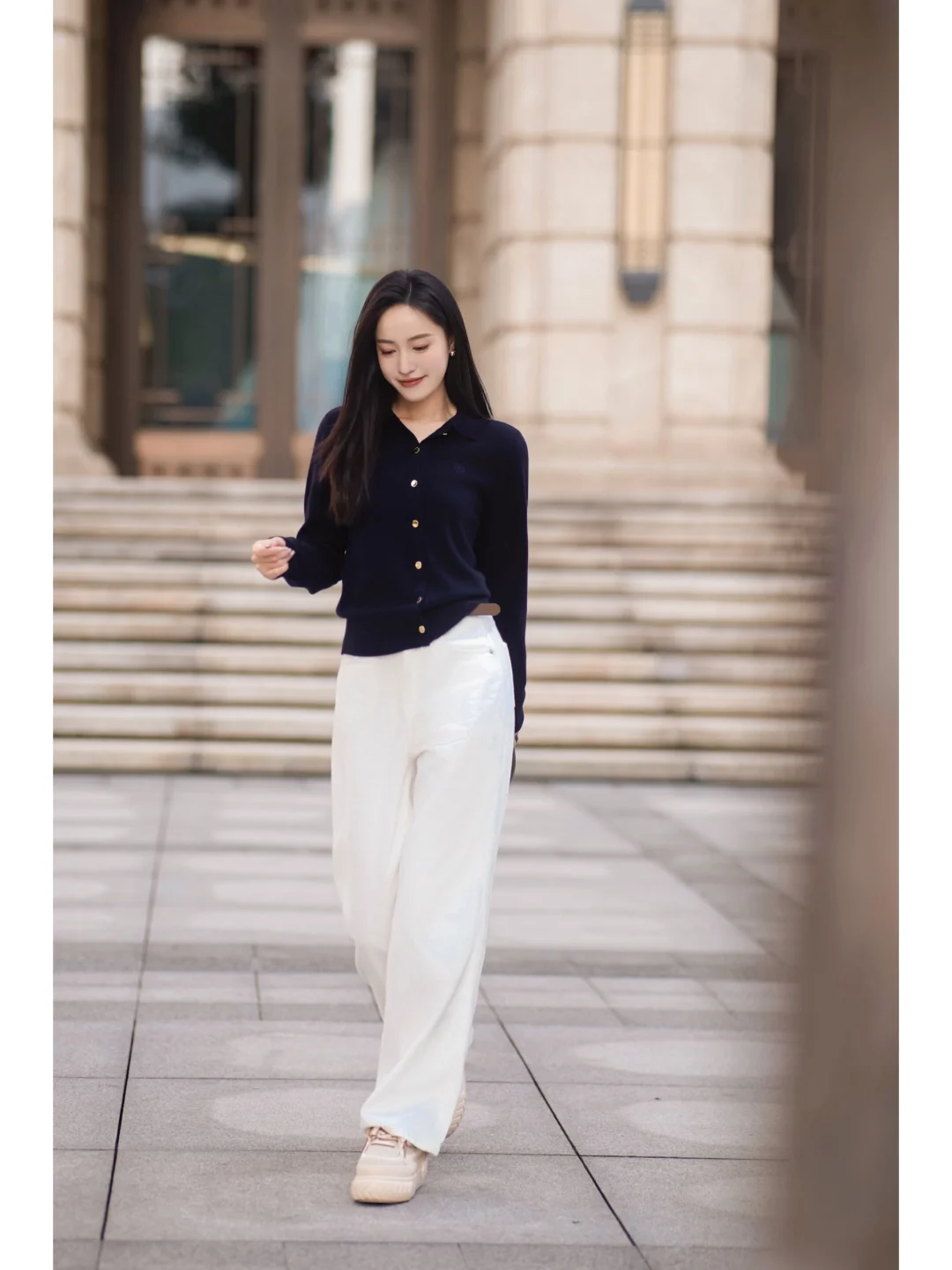 藏蓝色羊毛针织好柔软 搭配白色牛仔裤 一套干干净净的感觉~