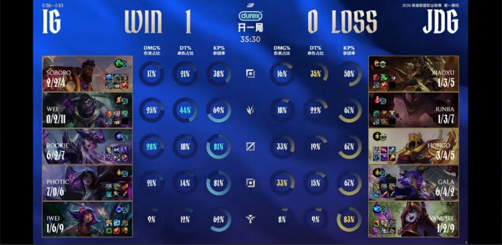 直播吧1月17日讯LPL第一赛段组内赛iG首局击败JDG,对局里Rookie凭借招牌辛德拉的亮眼表现,先是抢到大龙,以及关键团战控到鳄鱼并金身保命,最终iG团灭JDG一波比赛。